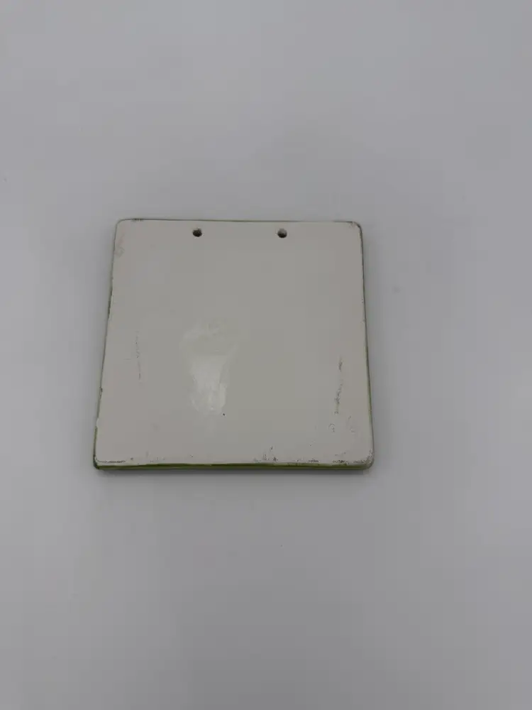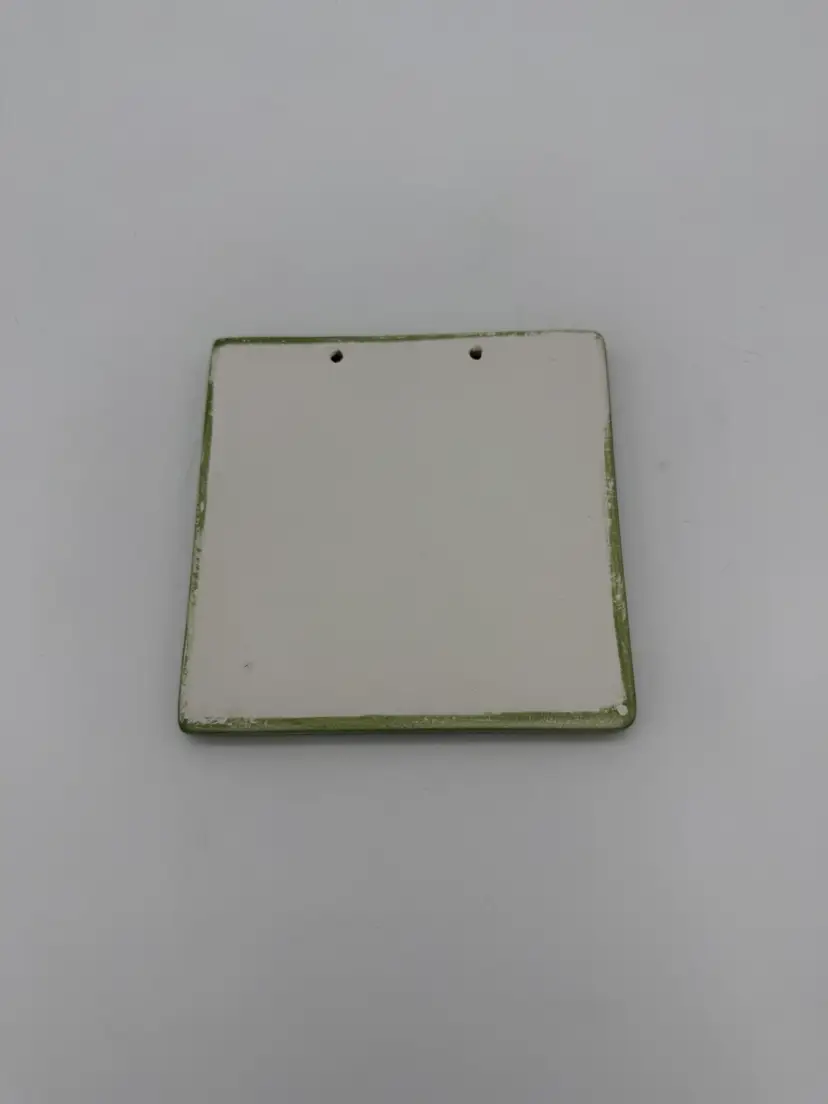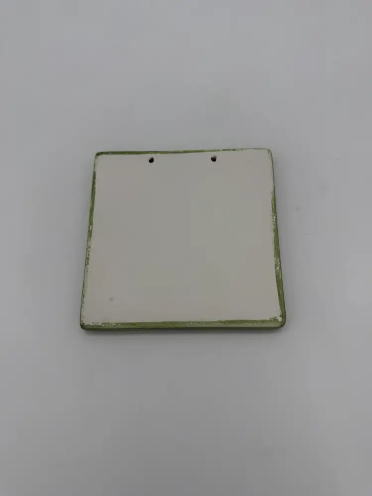 This product is a set of 2 vintage Southwestern hanging tiles featuring Mexican gecko lizard folk art pottery. Made in Mexico from clay and ceramic, these hand-crafted tiles have a rustic multi-color design with abstract patterns of gecko lizards. Suitable for use in the kitchen, on a wall, outdoors, or indoors, these decorative tiles add a unique Southwestern style to any room. With a glossy finish and weighing 9.5 oz altogether these handmade tiles are perfect for adding a touch of artistry to your decor. These tiles do not come with hanging material.