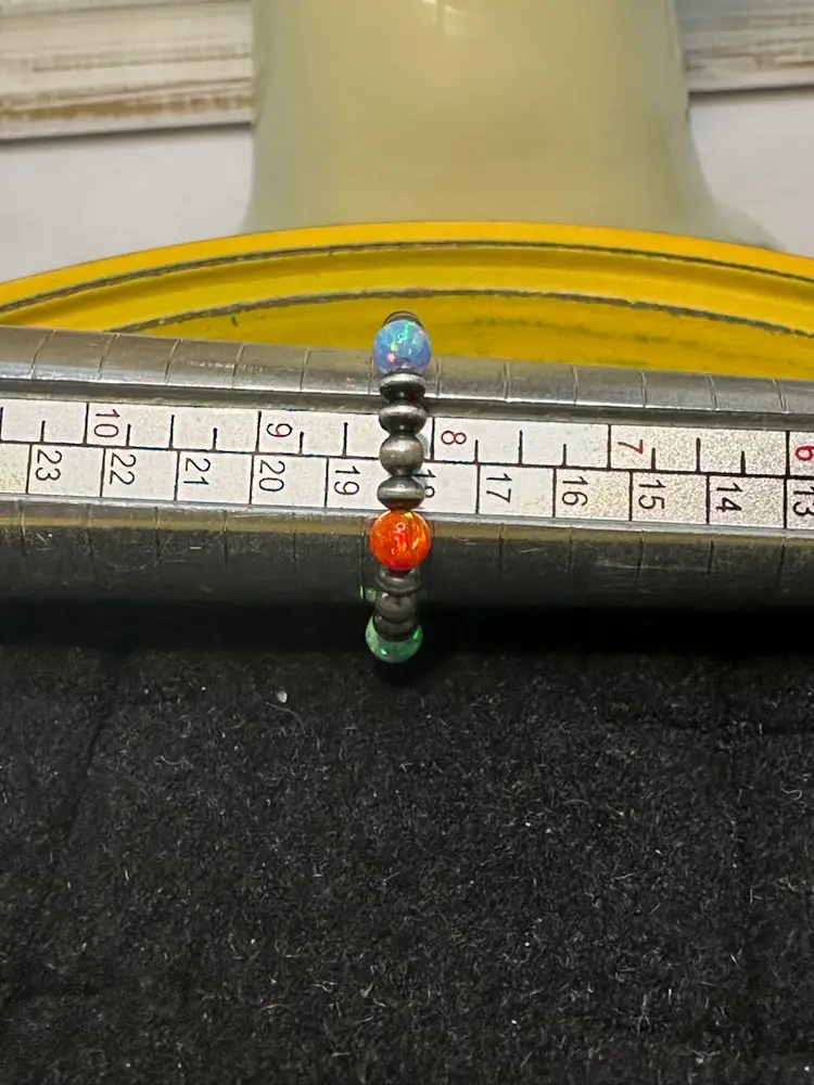 Artisan Made Southwestern Sterling Silver 925 Desert Pearls with Blue, Green, & Fire Opal Stones Stretch Sz Adjustable Acid Tested and confirmed Silver