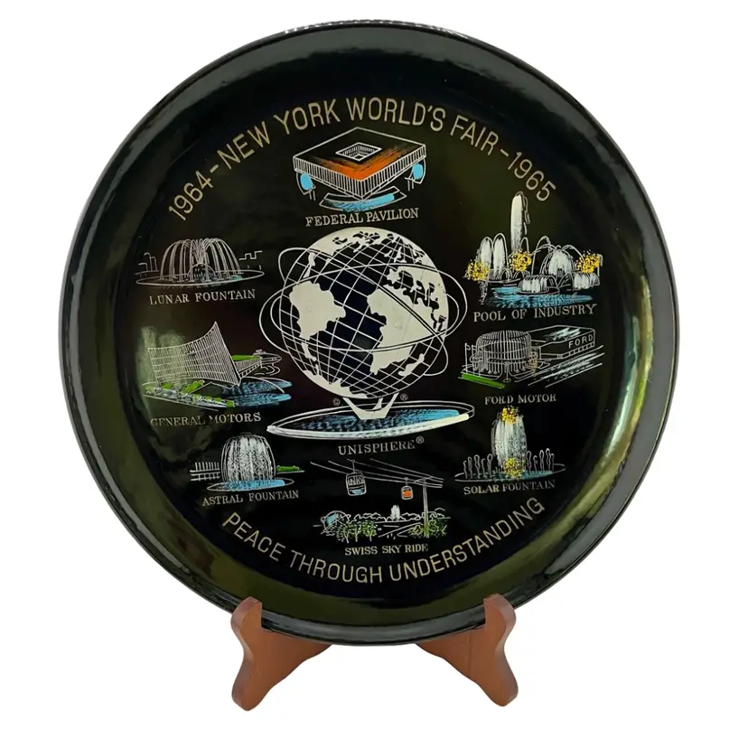 This shiny mcm black plate is from the 1964-65 New York World's Fair.