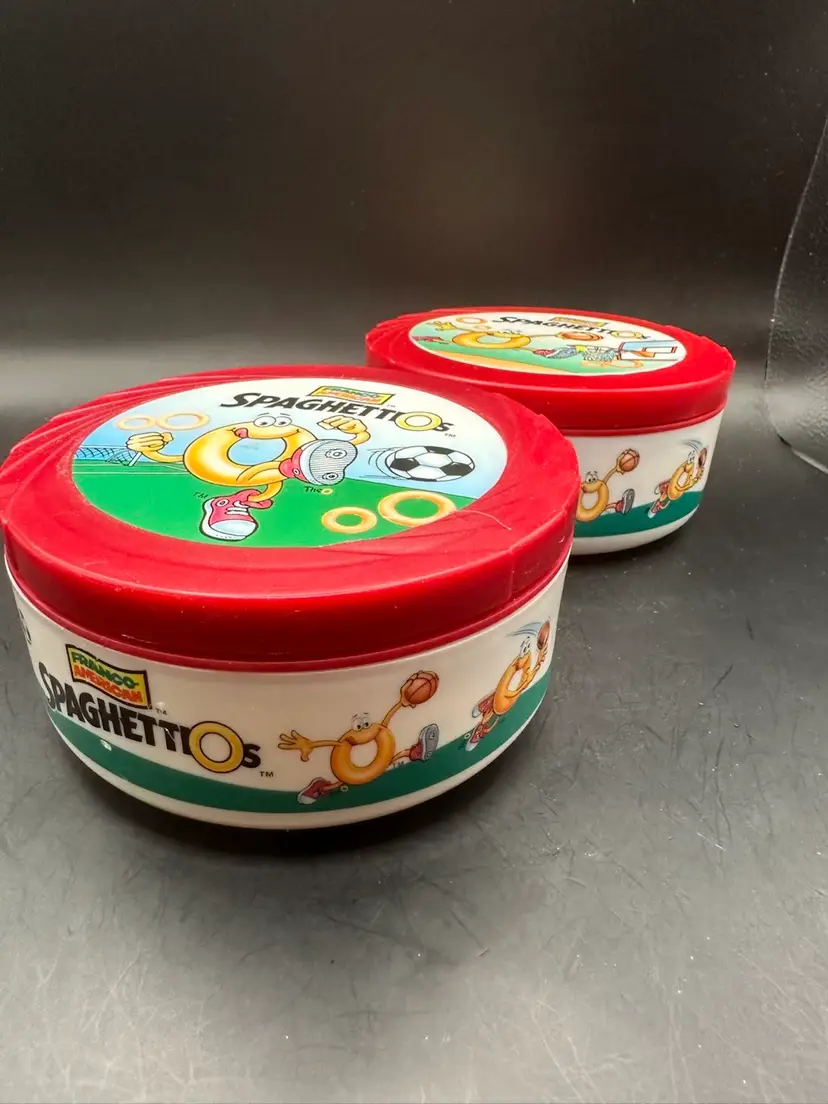 Spaghettios Vintage Travel Thermos Sports Bowls Basketball Football Set of 2.