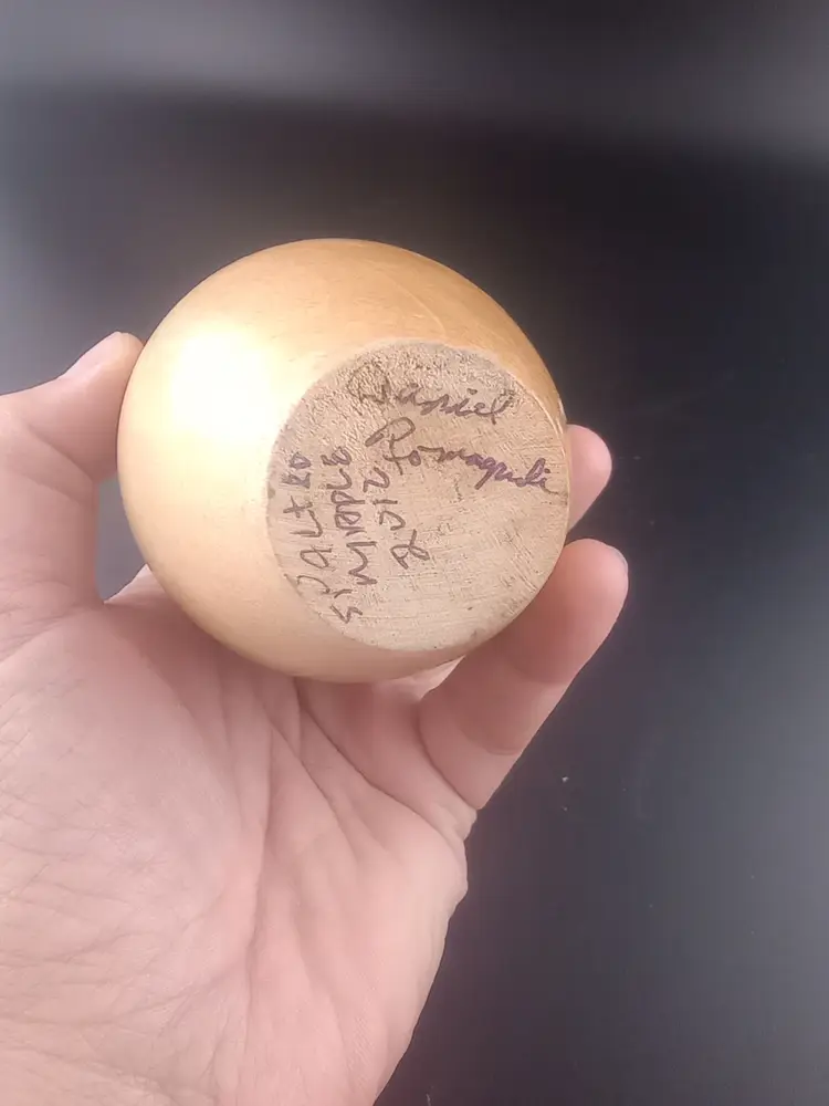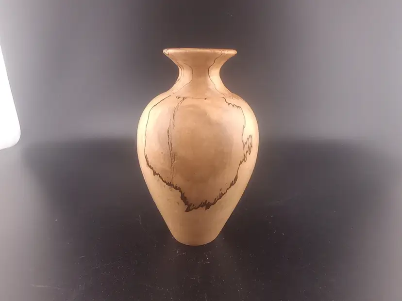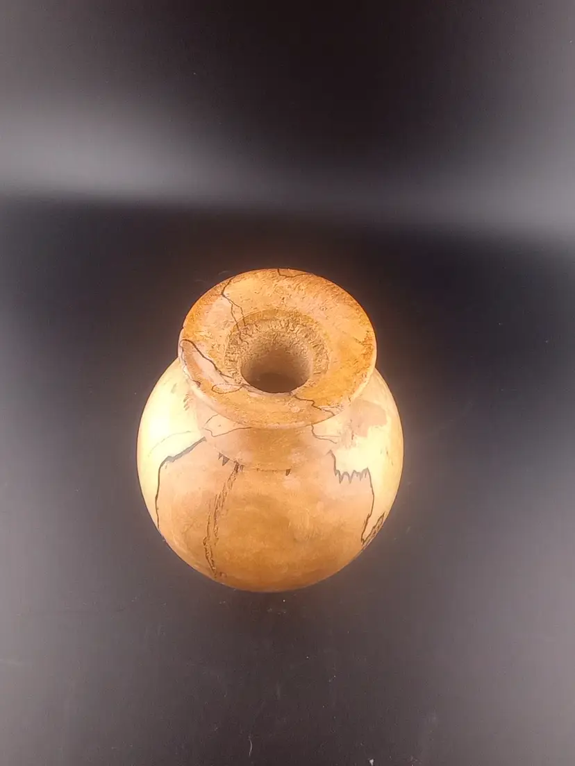 This is a beautiful little spalted maple bud vase made in 2012 by artist David Romagridi. It's just about 4" tall and is in excellent condition.