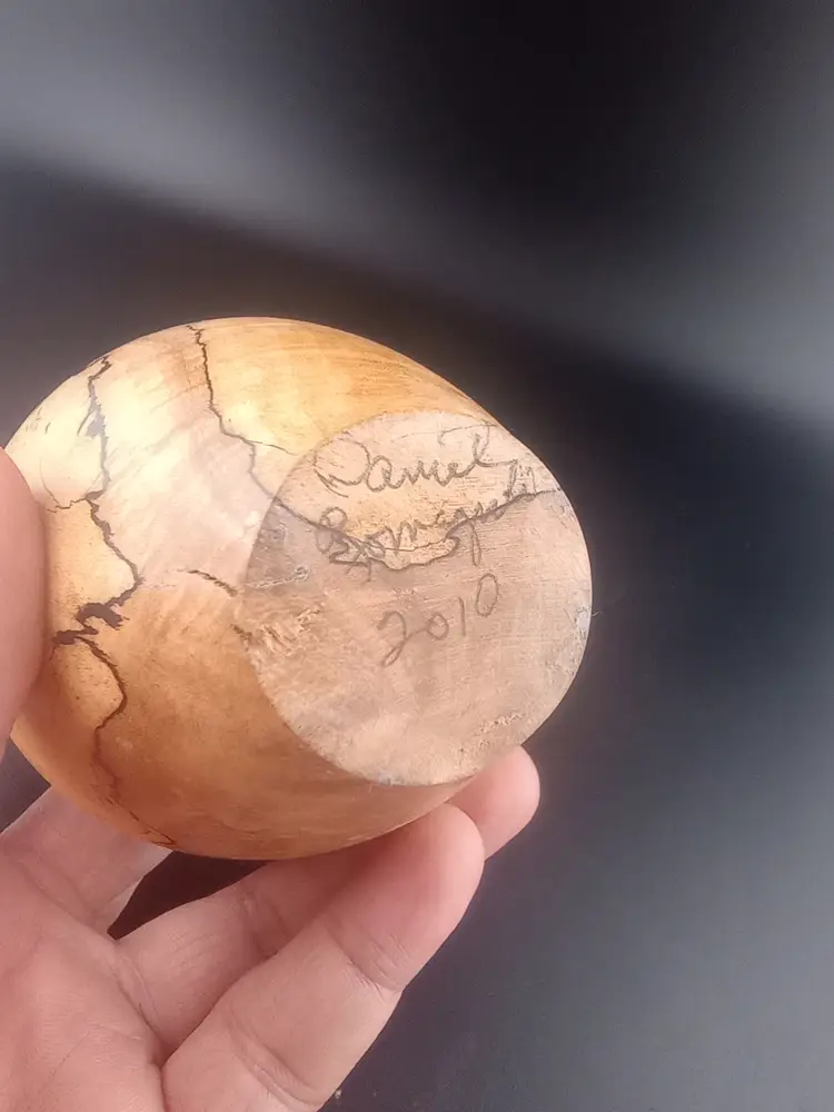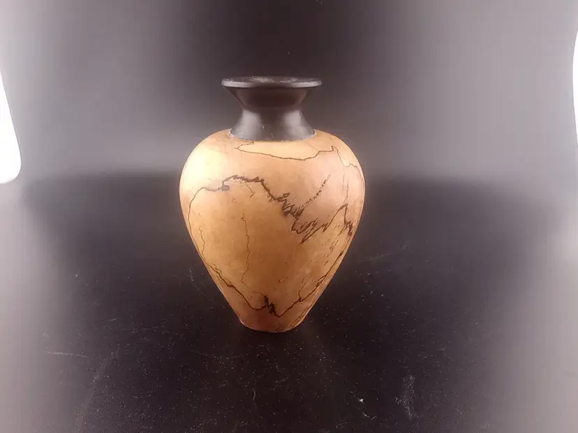 This is a gorgeous spalted maple bud vase by artist Daniel Romagridi. This piece is from 2010 and is just 4" tall. It's in excellent condition.