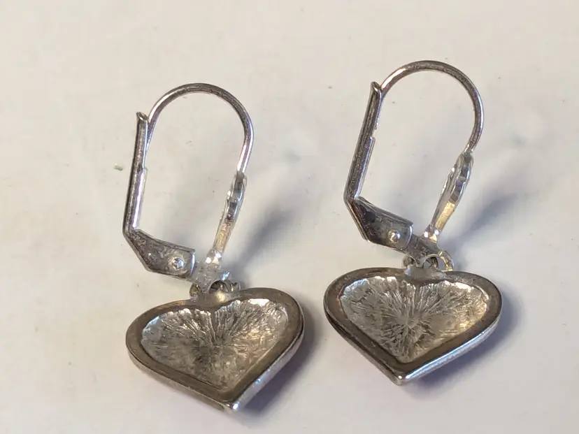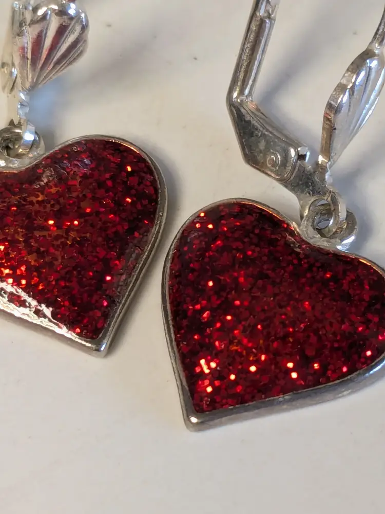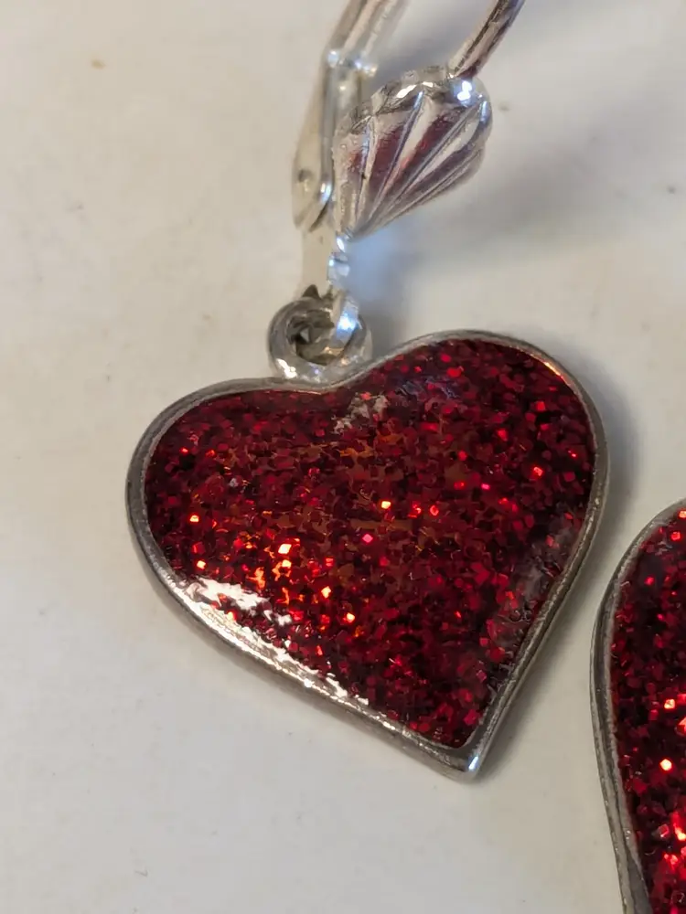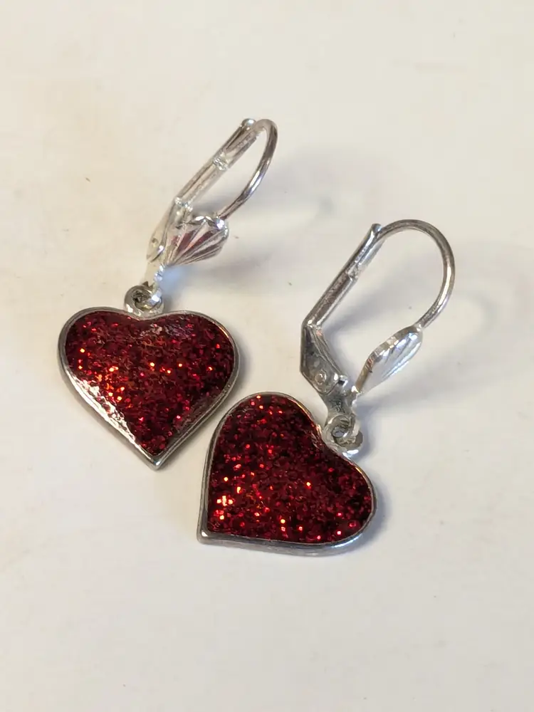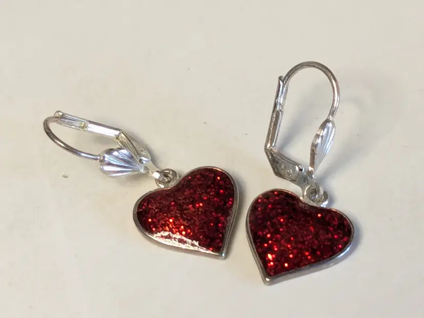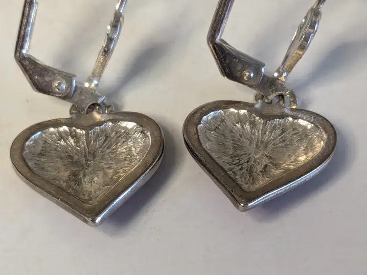 Valentine's Day goodness! Good condition. Silver tone is bright and shiny with no color loss. Lightweight and easy to wear. Hearts measure 1/2" x 1/2". Drop is 1 1/4". wen