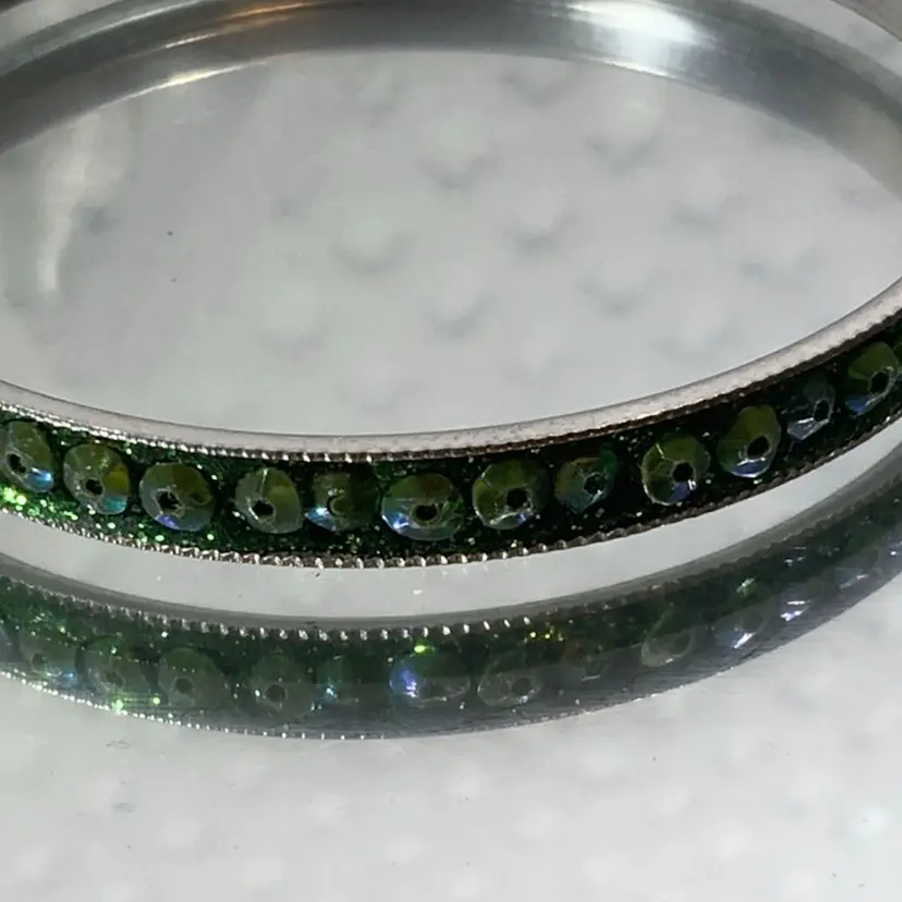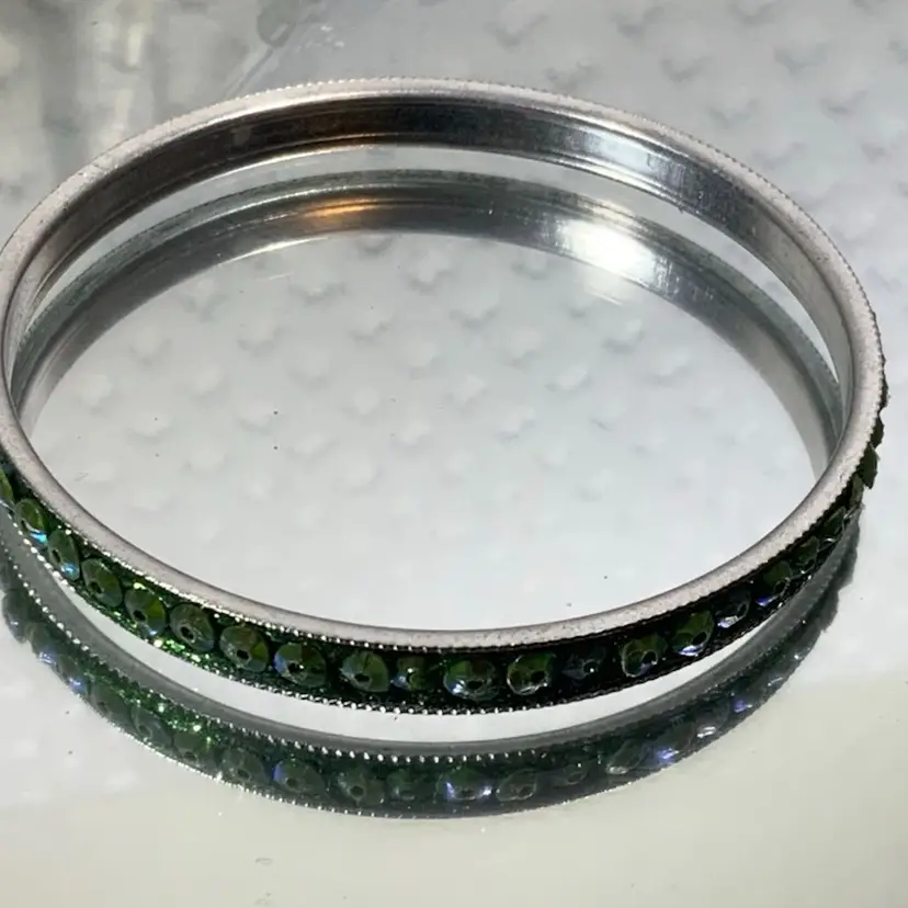 Very shinny and it’s metallic. Has som wear. Approximately 2.75” diameter and .25” tall. Please review photo. Some sort of light weight metal.