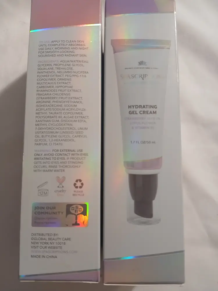 Bundle of 2 Spascriptions Wellness 101 Hydrating Gel Creams (1.7 fl oz / 50mL each). Infused with strawberry seed oil, lotus flower, and vitamin B5, this lightweight gel cream hydrates, softens, and restores a healthy glow. Perfect for dewy, soft, and radiant skin. Formula is cruelty-free, non-comedogenic, vegan-friendly, and suitable for all skin types. Ideal for daily use, morning or night, to nourish and replenish skin.