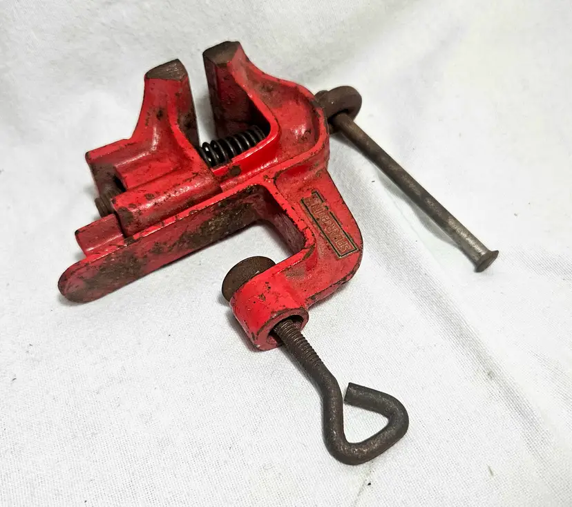 Features: -2 inch width jaws -Ability to clamp to a work surface and remove for storage when not in use -Bright orange paint with original logo