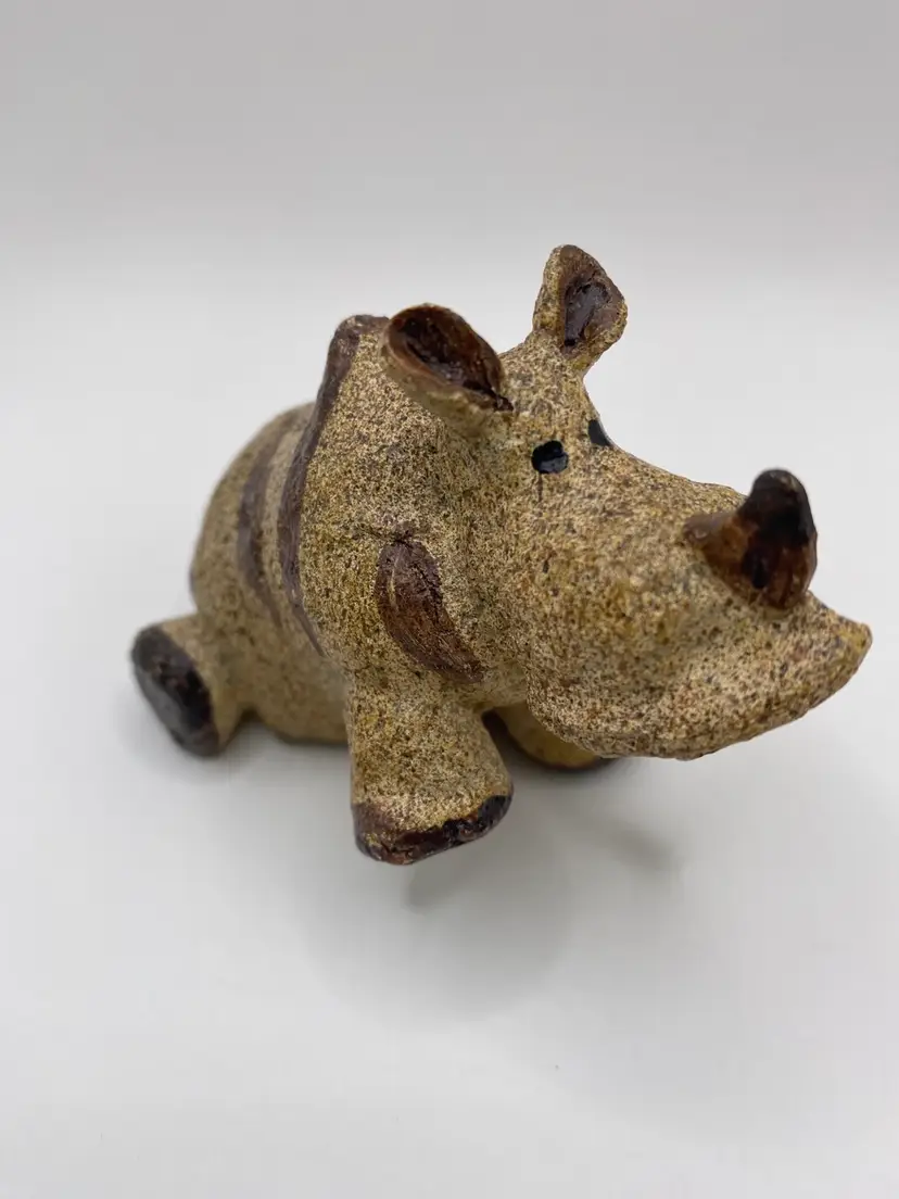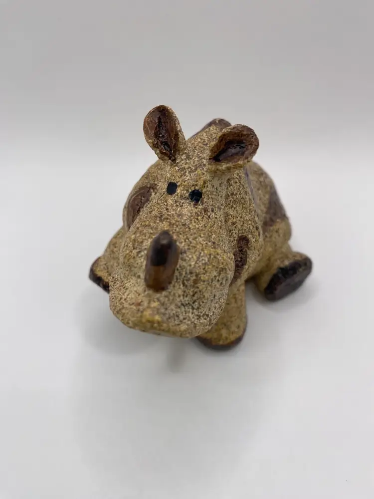 Speckled Clay Rhino Figurine. Cute! Great Condition!