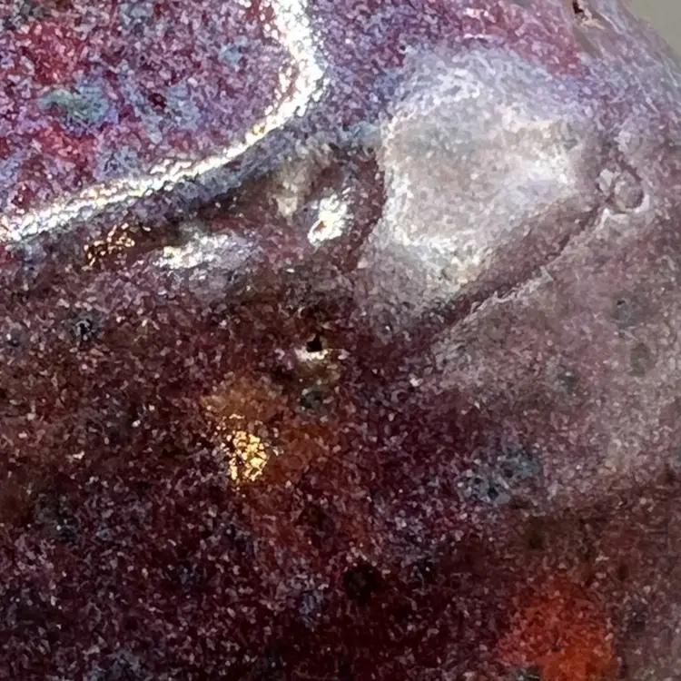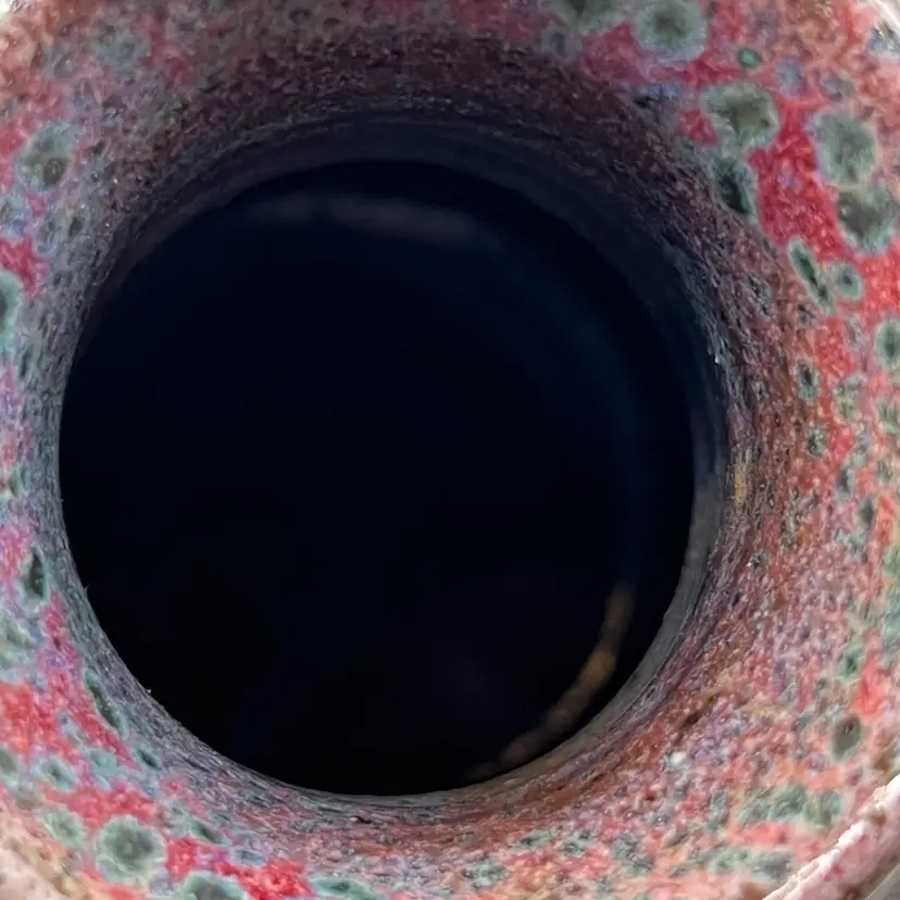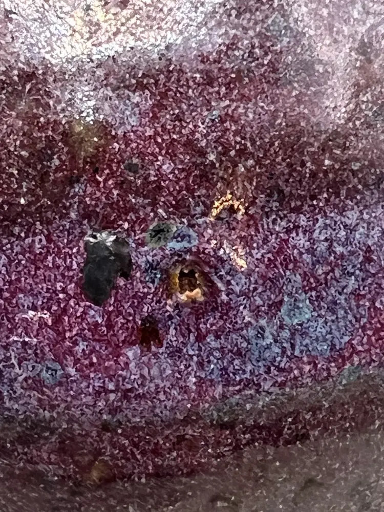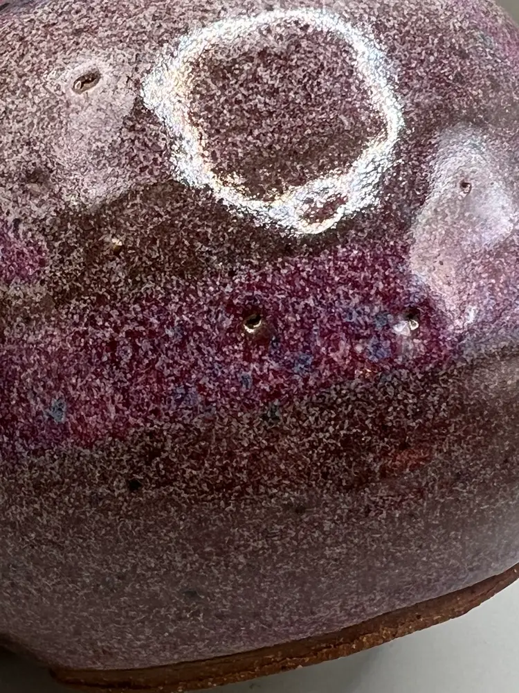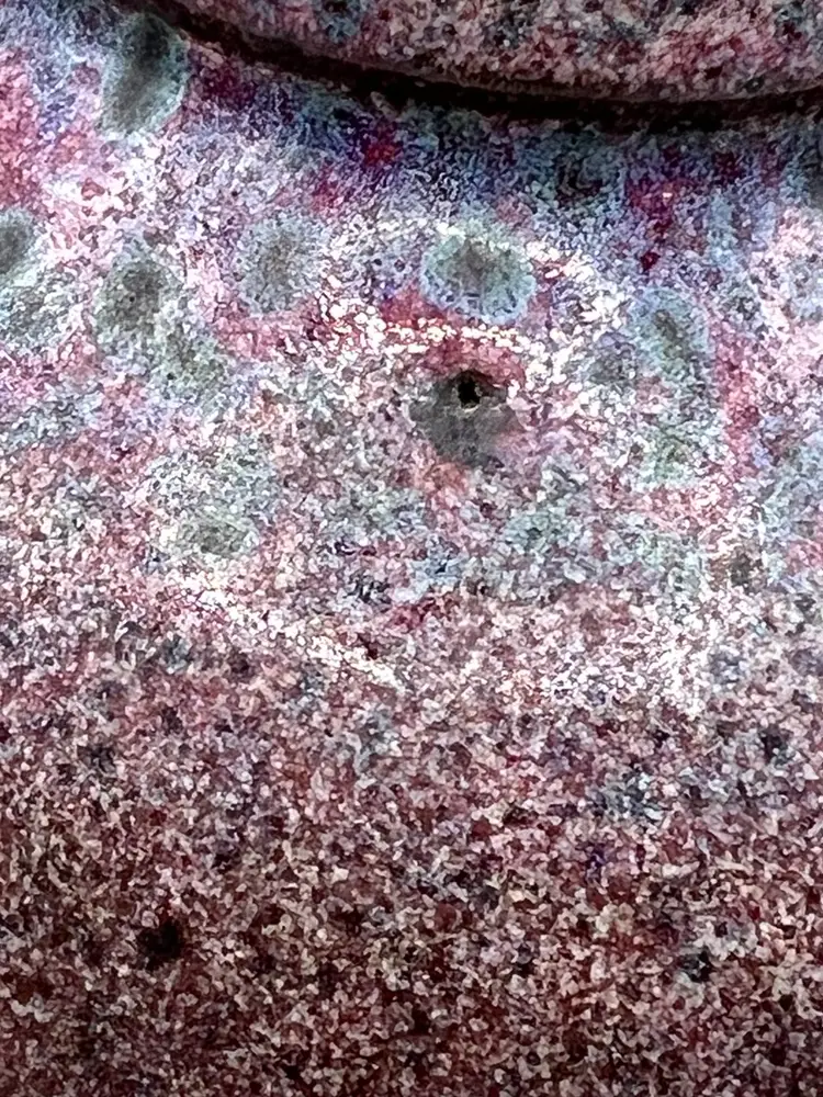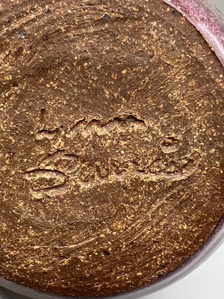 No chips. Has some small pinholes/dimples. I cannot make out the signature on the bottom.