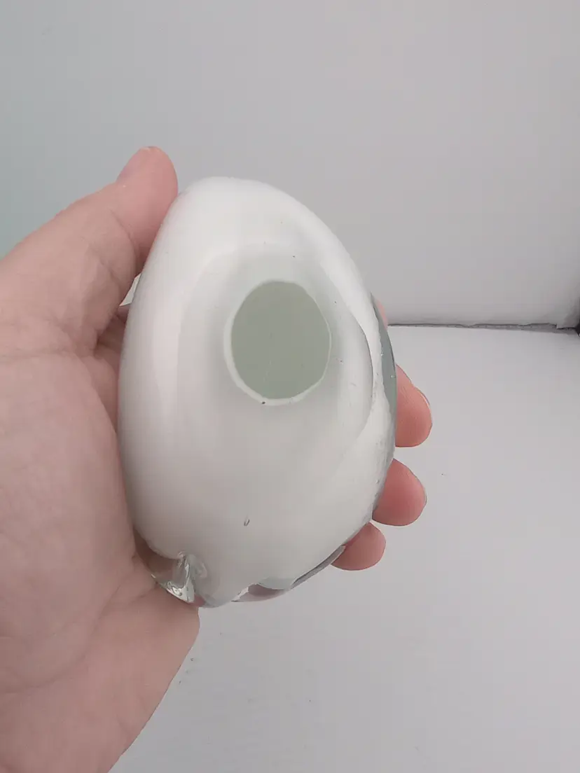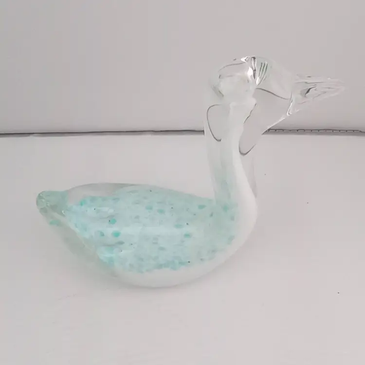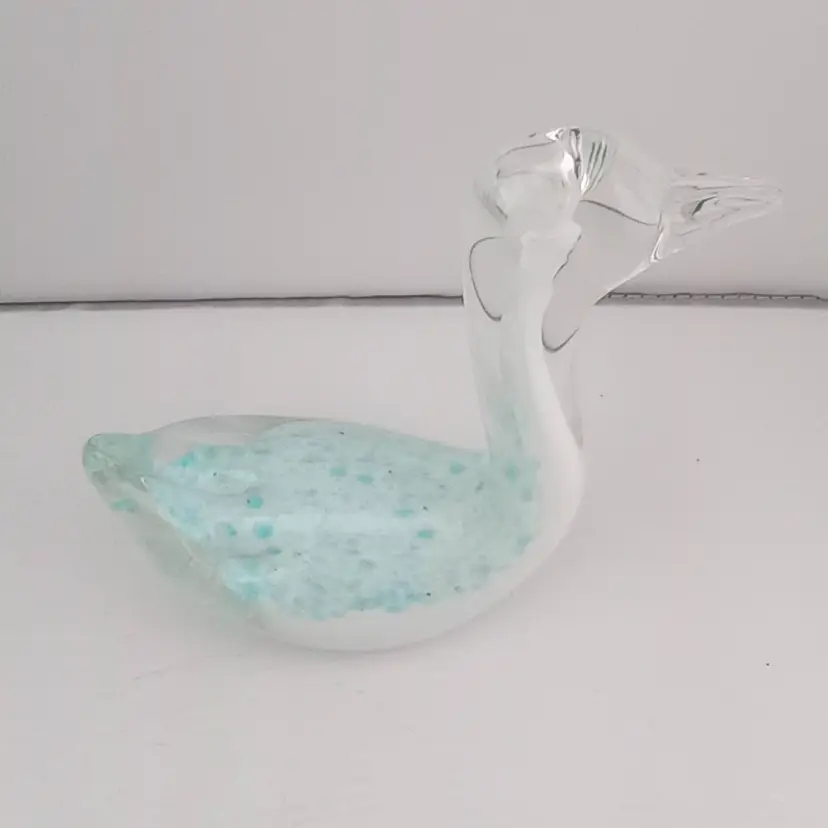 This is a speckled swan paperweight with a lovely soft turquoise on her back. She's in great condition with no noted flaws.