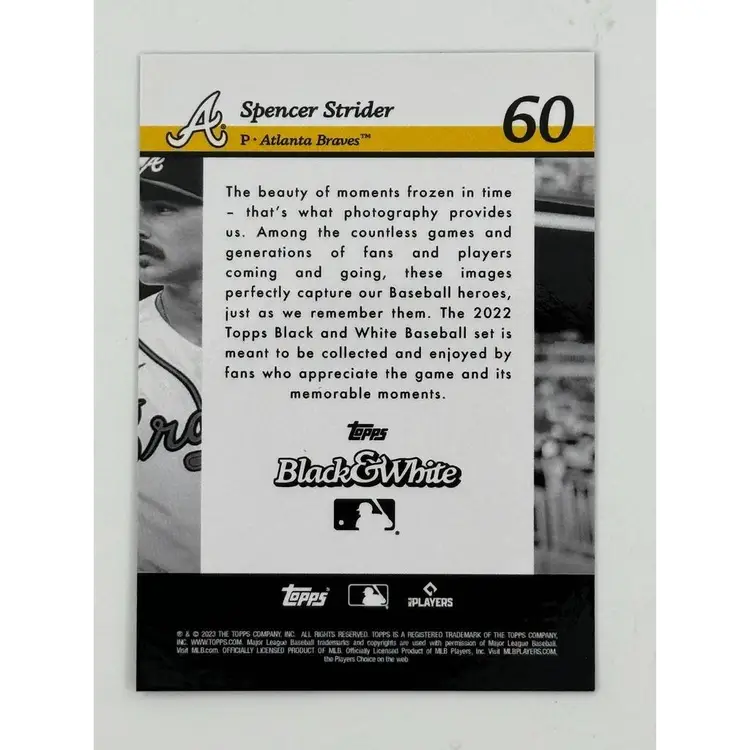 Spencer Strider 2023 Topps Black & White Color Background /49 Atlanta Braves