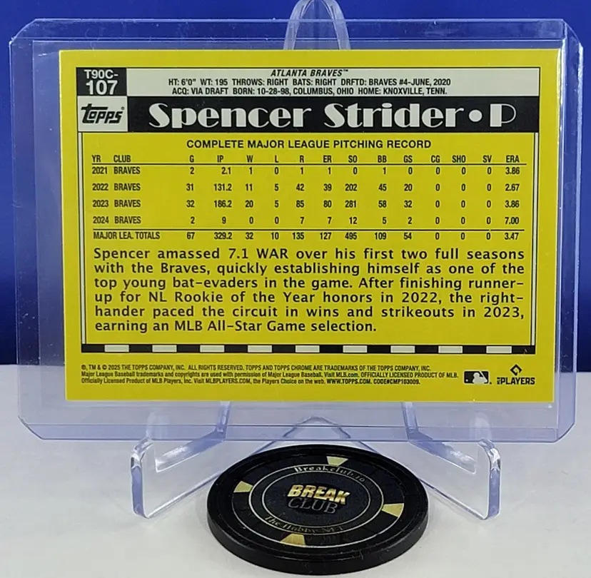 Spenser Strider 2025 Topps Series 2 1990 Silver Pack Mojo #T90C-107 Atlanta Braves