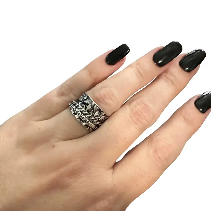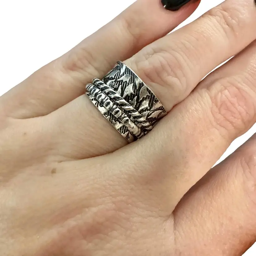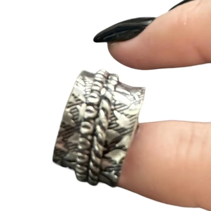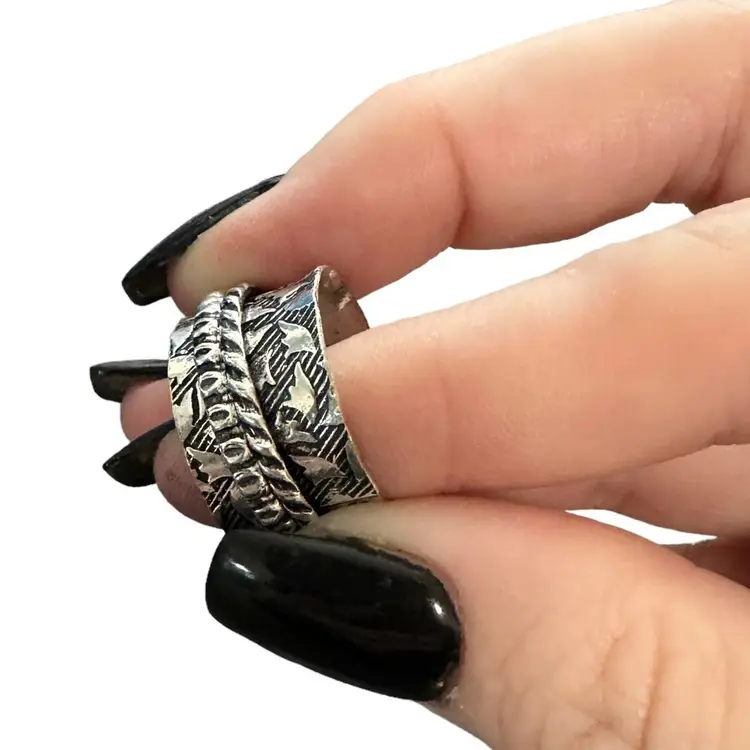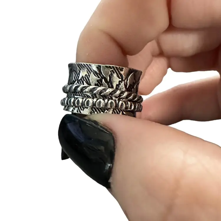 Spinners Meditation Ring 925 Sterling Silver Plated Fashion Jewelry Size women 7 Great upscale fidget tool for adhd, anxiety, and meditation Brass metal base, thick band with three smaller spinner bands on top New