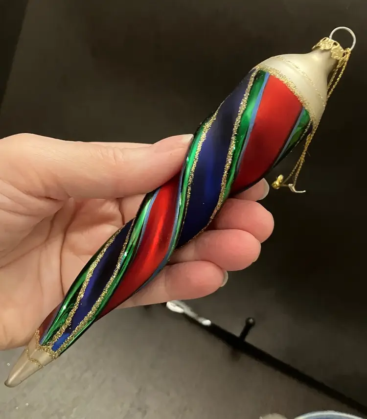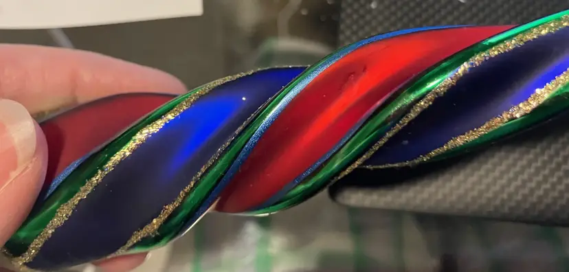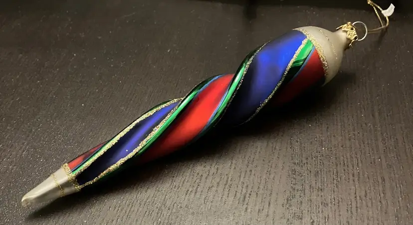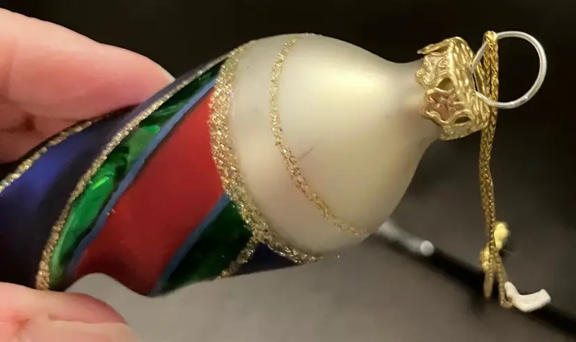 Unknown age or maker. There is a minor defect on the red (see image) and lighter line on the cream area. It measures almost 7" long.