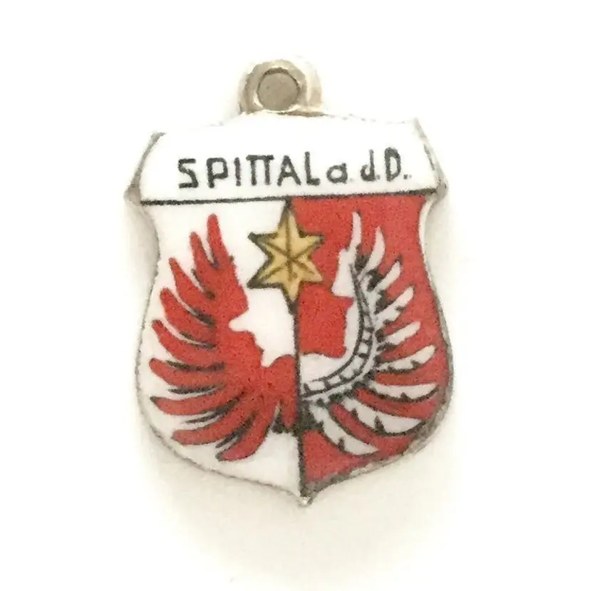 Spittal Germany - Vintage Enamel Souvenir Travel Shield Bracelet Charm - 800 Silver