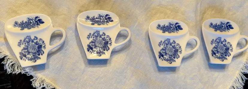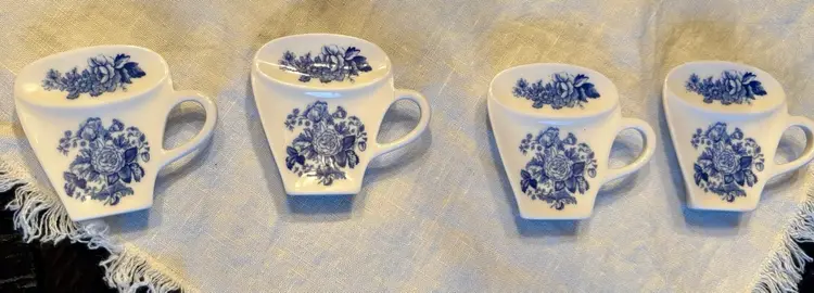 It features a blue and white floral pattern with rose flowers. Shaped like a miniature cup with a handle. It is designed to hold used tea bags, spoons, or lemon wedges off the table during tea time. This pattern is part of the Spode "Blue Room" collection. No chips, cracks or crazing. Back needs a little scrub.