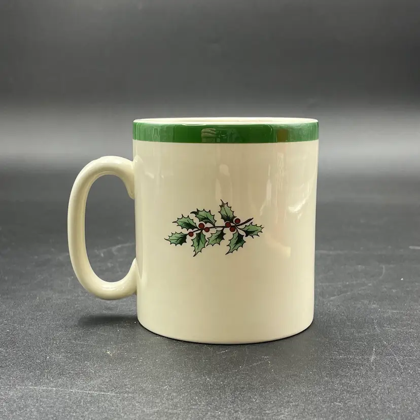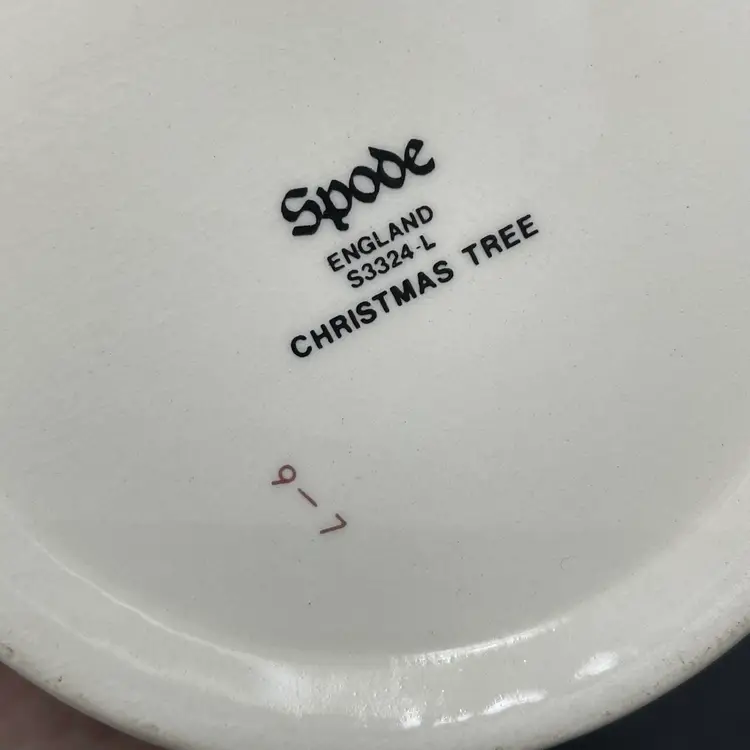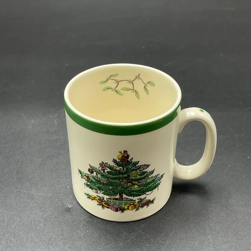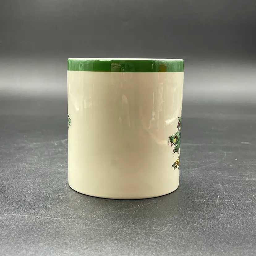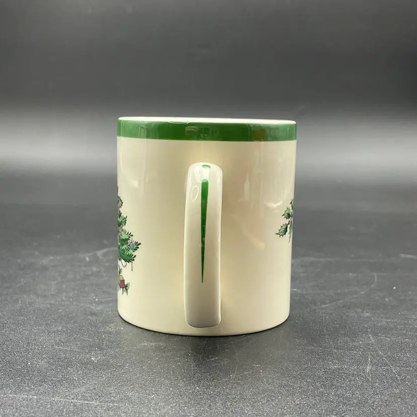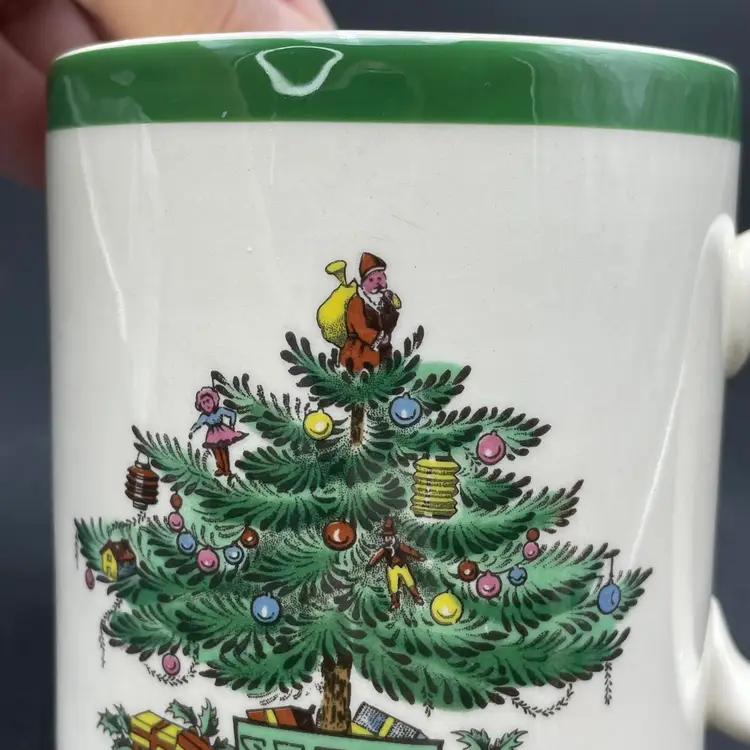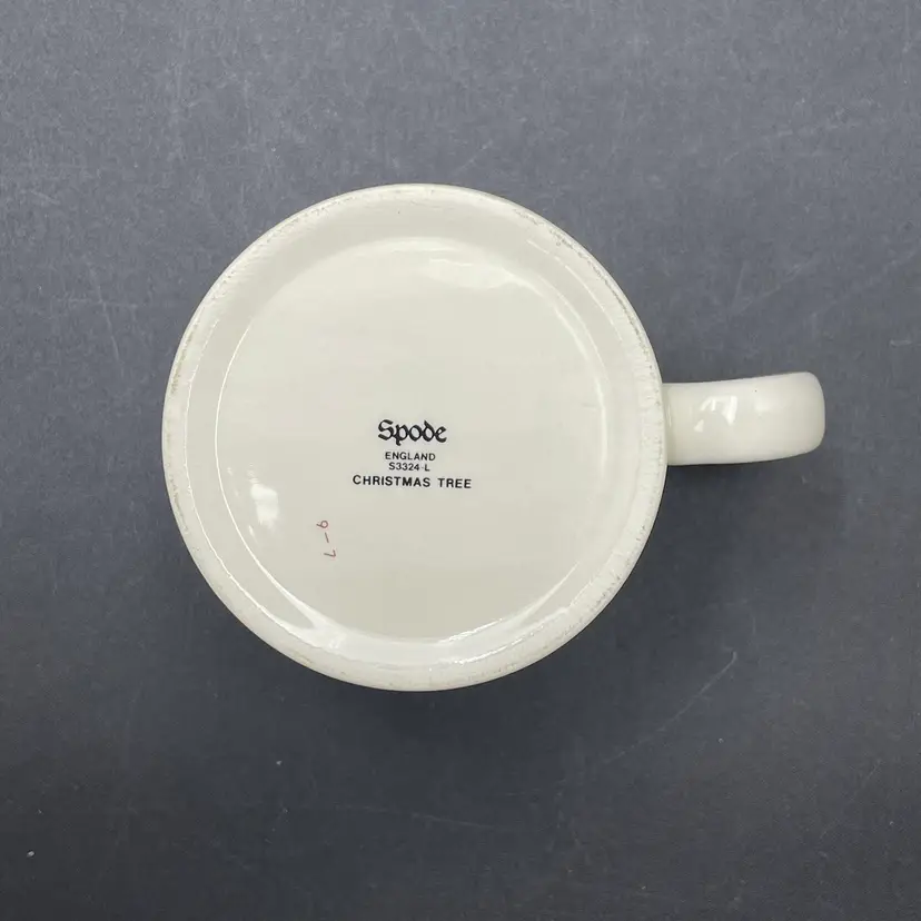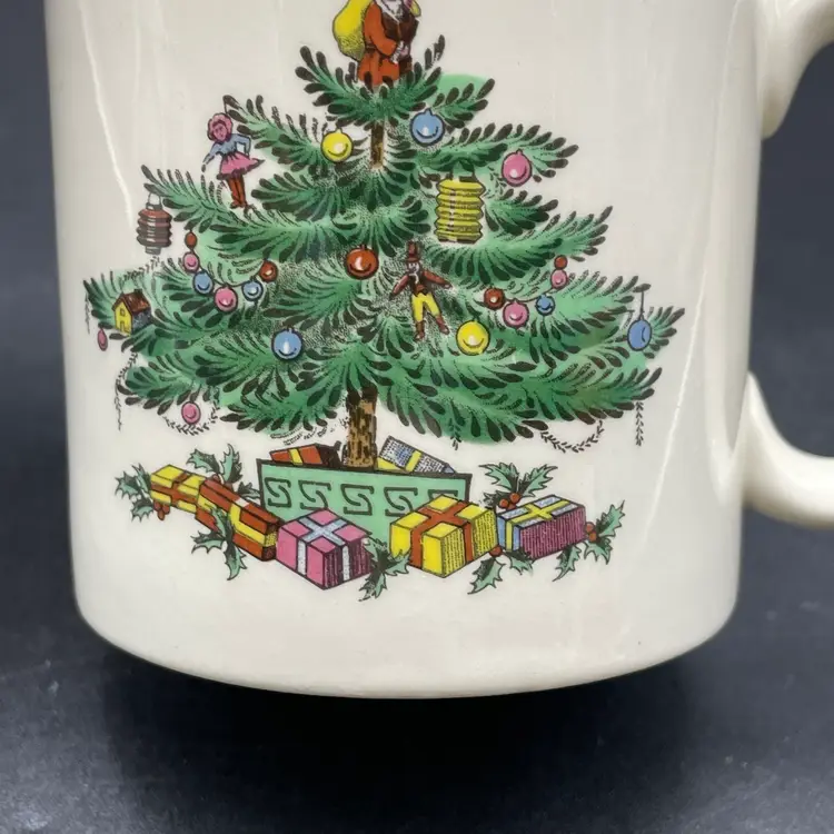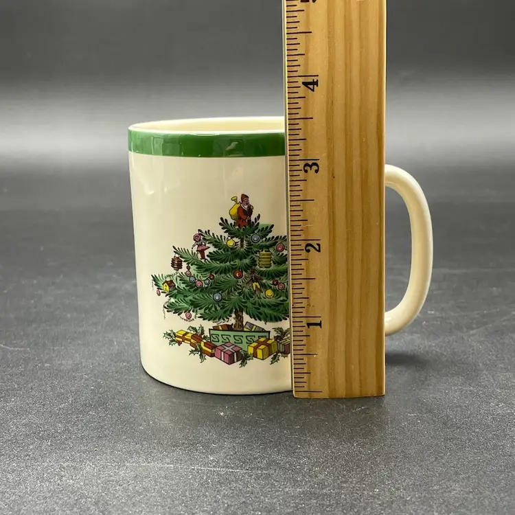 This is a Spode #s3324-L Christmas Tree pattern coffee mug. Made in England. Measures approximately 3.25" tall x 3" across, and holds approximately 10fl oz. No major flaws.