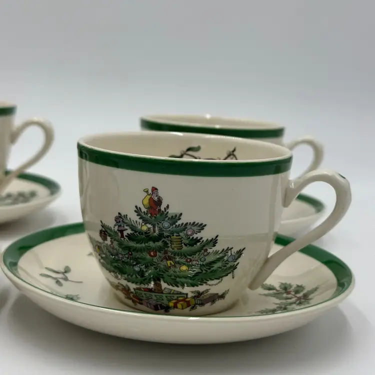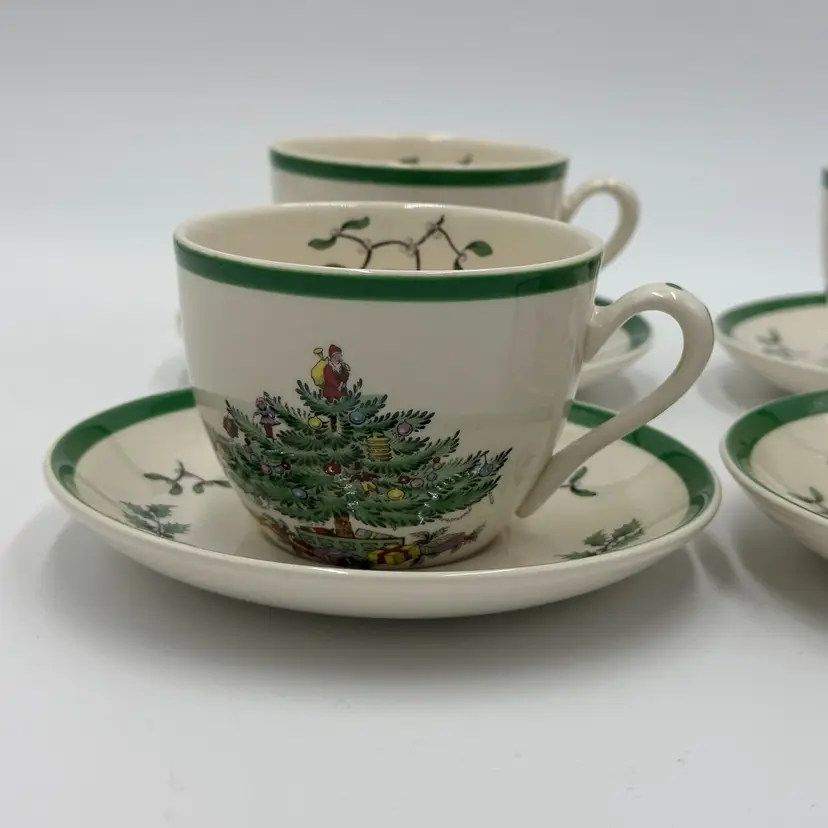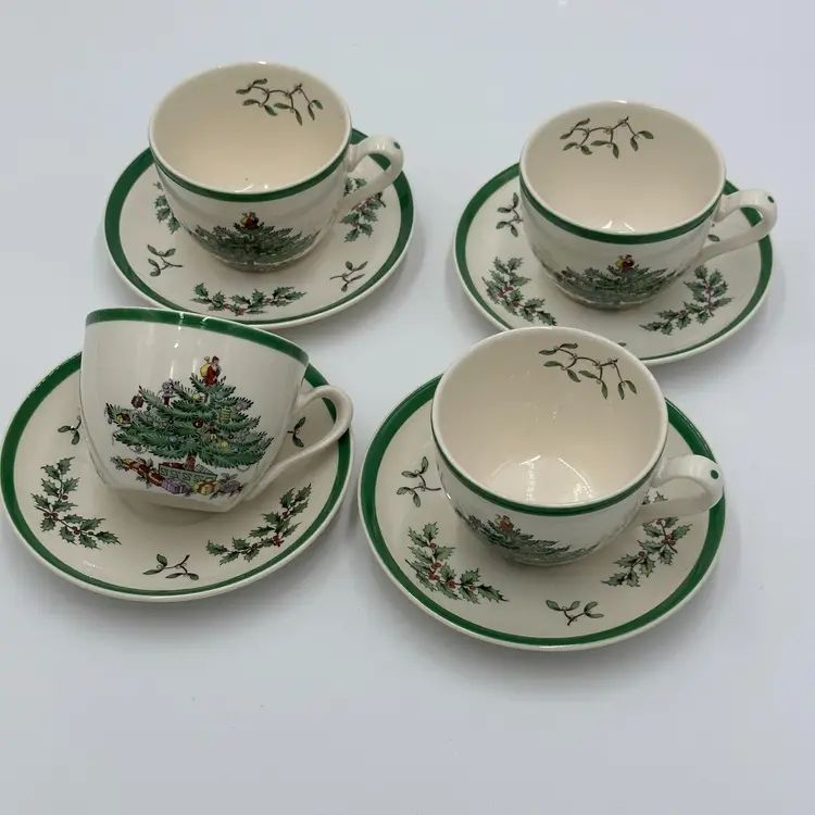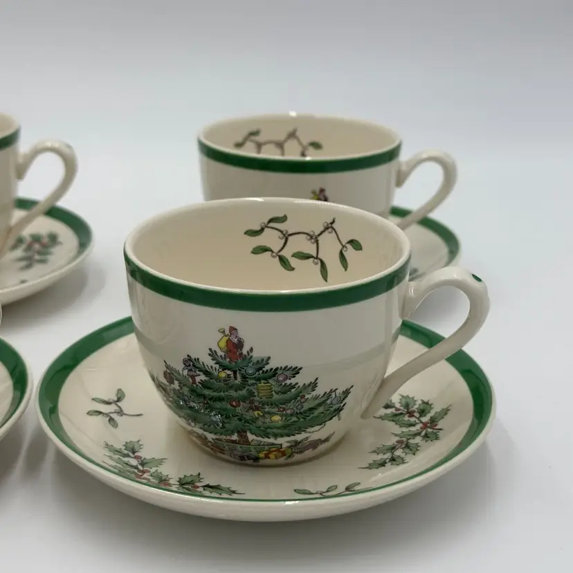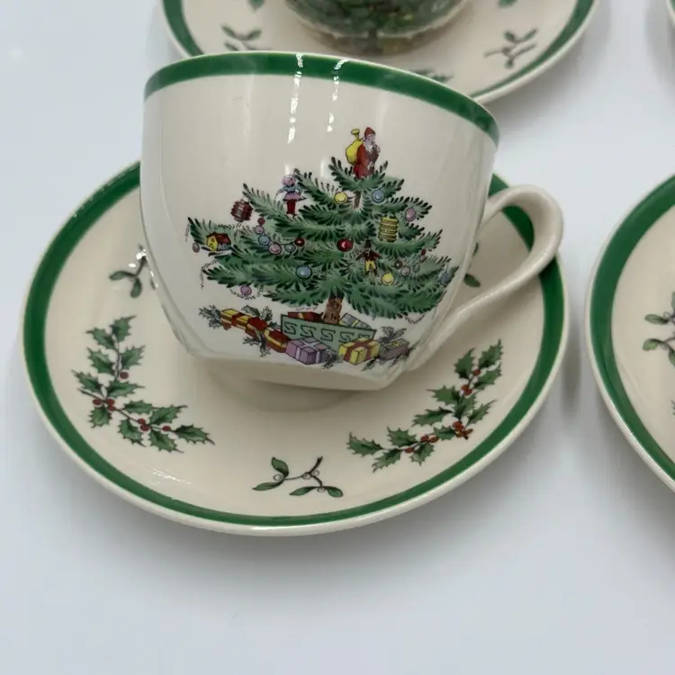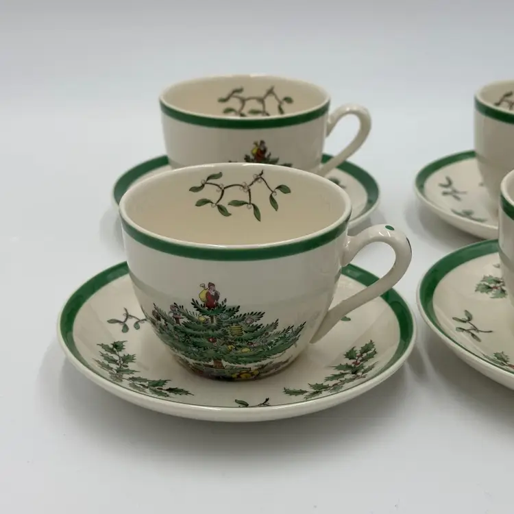 Department: Unisex Adults Pattern: CHRISTMAS TREE Time Period Manufactured: 1980-1989 Number of Items in Set: Eight-Piece Occasion: Christmas Vintage: Yes Country/Region of Manufacture: United Kingdom Origin: England Material: Porcelain Year Manufactured: 1980 Product Line: CHRISTMAS TREE Shape: Round Production Style: Art Pottery Brand: Spode Color: White Set Includes: Cup & Saucer Set Original/Licensed Reproduction: Original Backstamp: Printed Theme: Scandinavian Type: Cup & Saucer