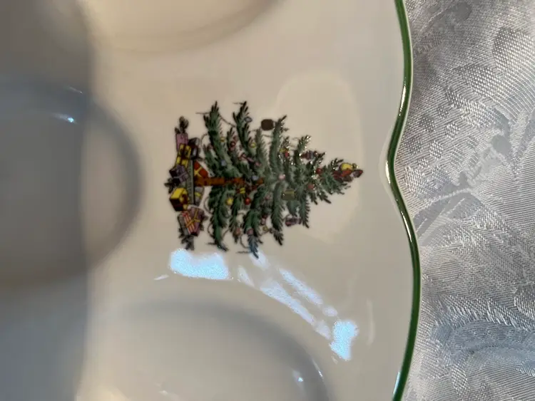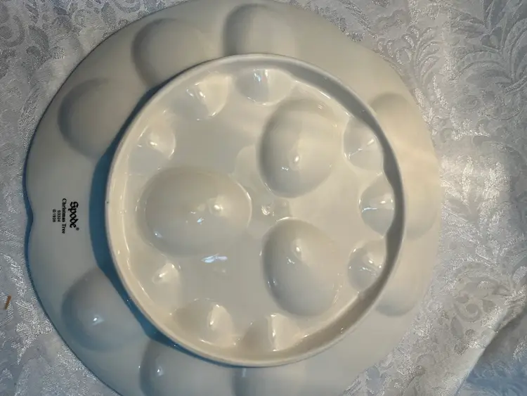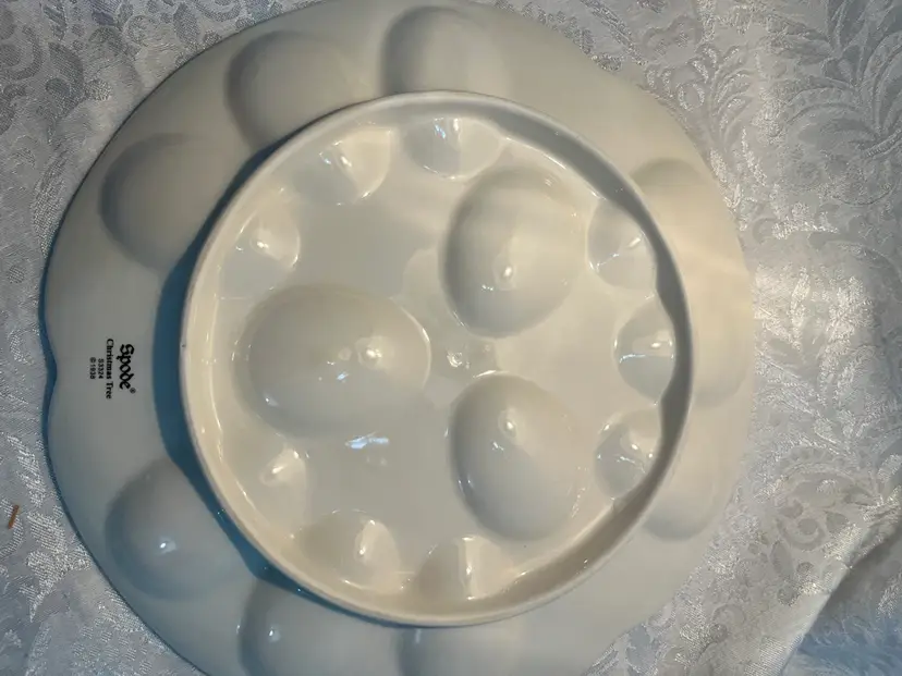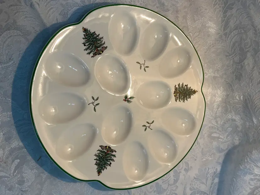 Spode Christmas tree deviled egg plate 11.5 inches - holds 12 eggs. In original packaging . Late 21st century made in Staffordshire England