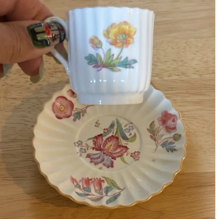 Spode Copeland, England, China, Iris, Pattern, Cup, And Saucer