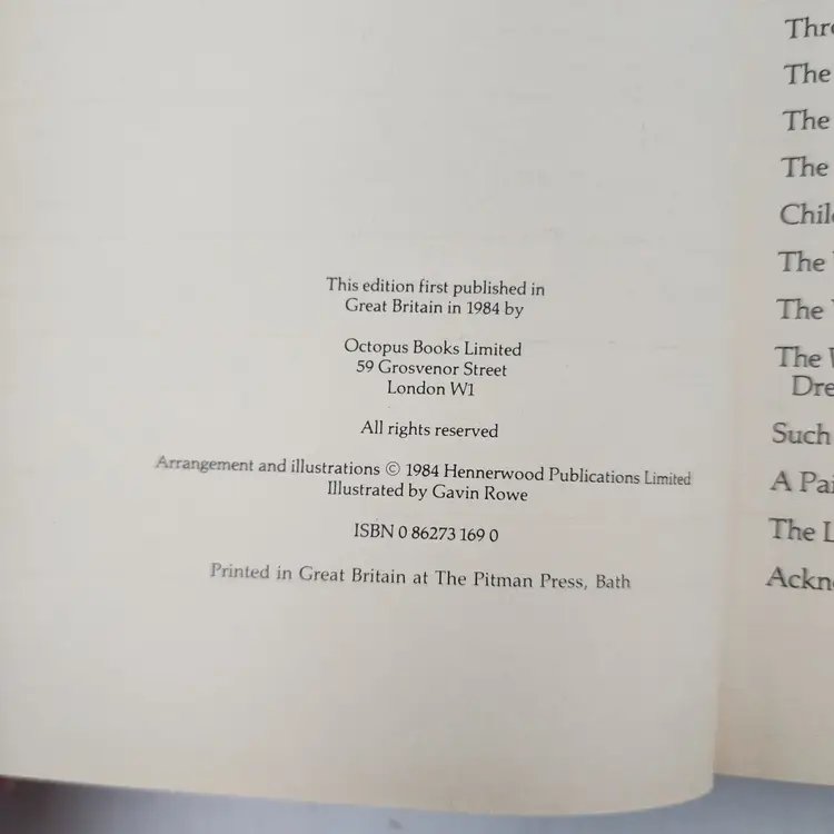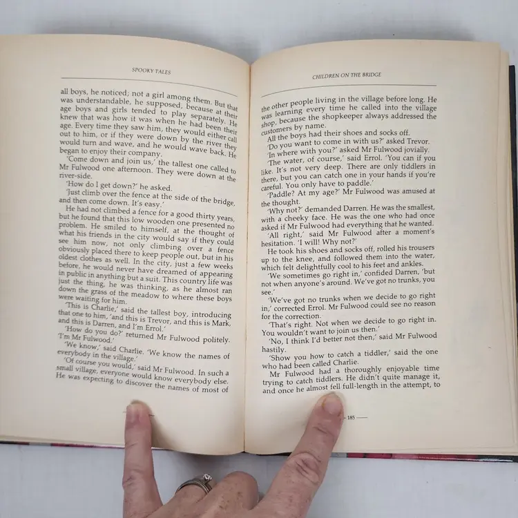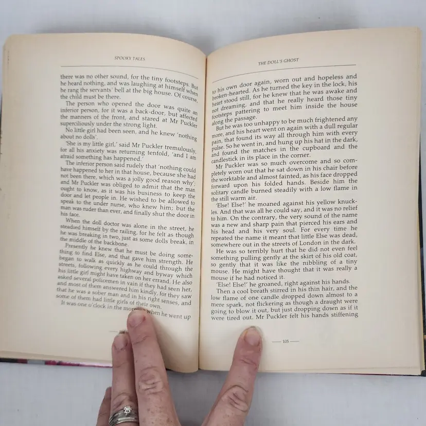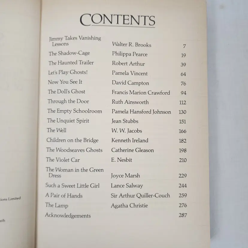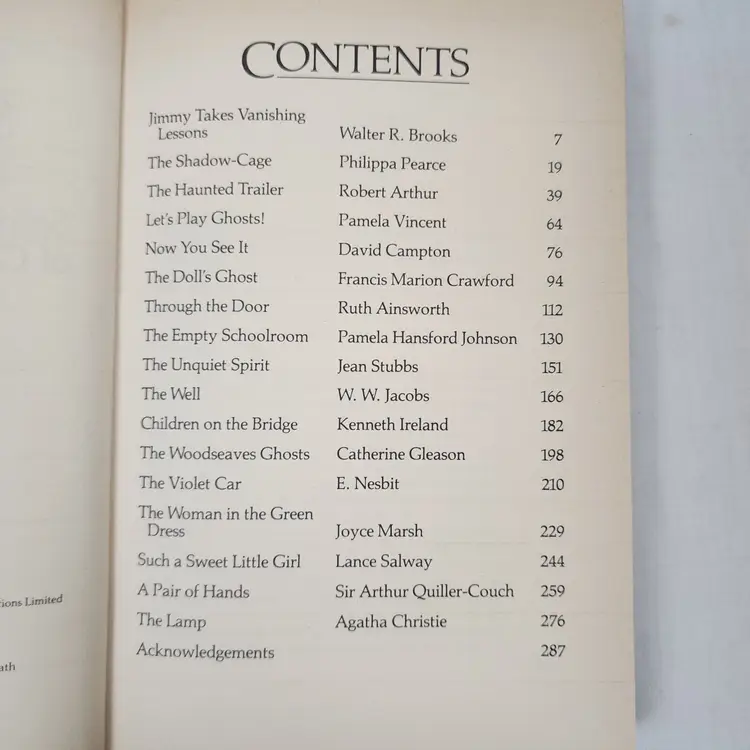 Book Title: Spooky Tales Narrative Type: Fiction Publisher: Octopus Books Original Language: English Vintage: Yes Publication Year: 1984 Type: Short Stories Format: Hardcover Language: English Author: Agatha Christie, Walter R. Brooks, Philippa Pearce, Robert Arthur, Pamela Vincent, David Campton, Francis Marion Crawford, Ruth Ainsworth, Pamela Hansford Johnson, Jean Stubbs, W. W. Jacobs, Kenneth Ireland, Catherine Gleason, E. Nesbit, Joyce Marsh, Lance Salway, Sir Arthur Quiller-Couch Genre: Children & Young Adults, Juvenile Fiction, Scary Stories Topic: Spooky Stories, Fantasy & Magic, General
