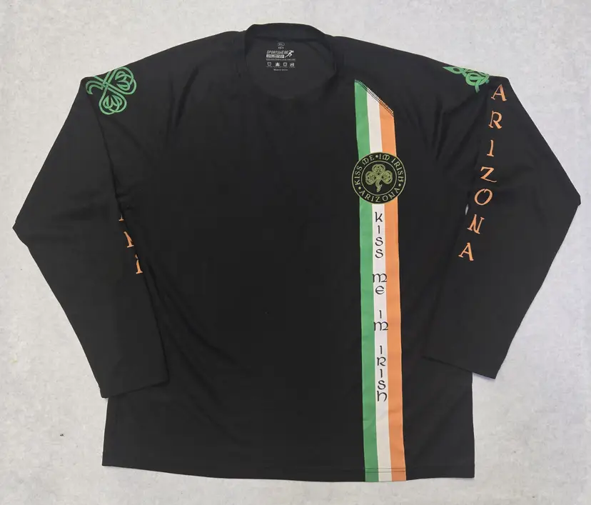 Sportswear Unlimited T-Shirt Mens XXL Black Long Sleeve "Kiss me Im Irish"