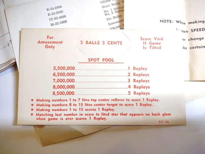 Brand: Williams Year: 1959 Model: Spot Pool Country/Region of Manufacture: United States Pinball: Paperwork