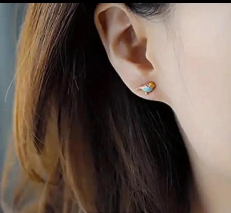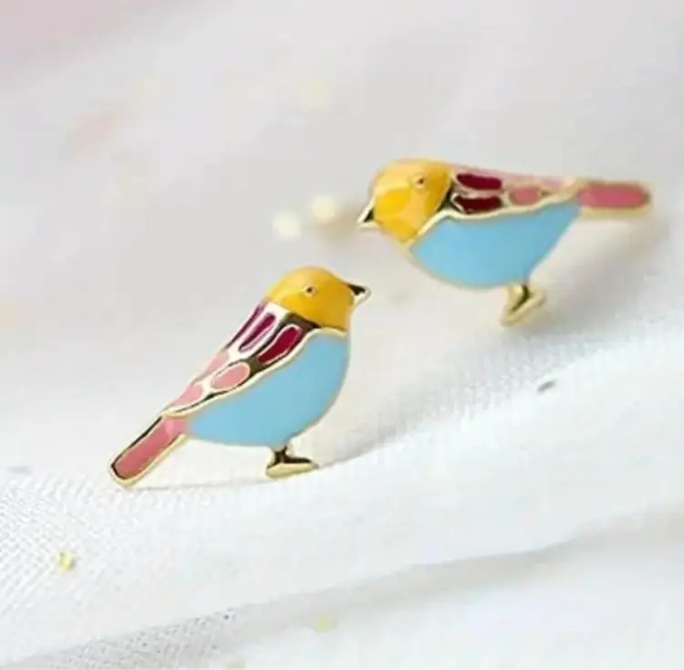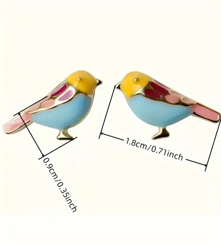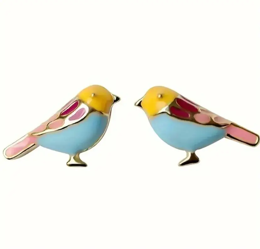 ADORABLE PETITE ENAMELED COLORFUL LITTLE SPRINGTIME BIRD STUD EARRINGS, BUTTERFLY GOLDTONE BACKS,NEW NO ORIGINAL TAGS 22.00