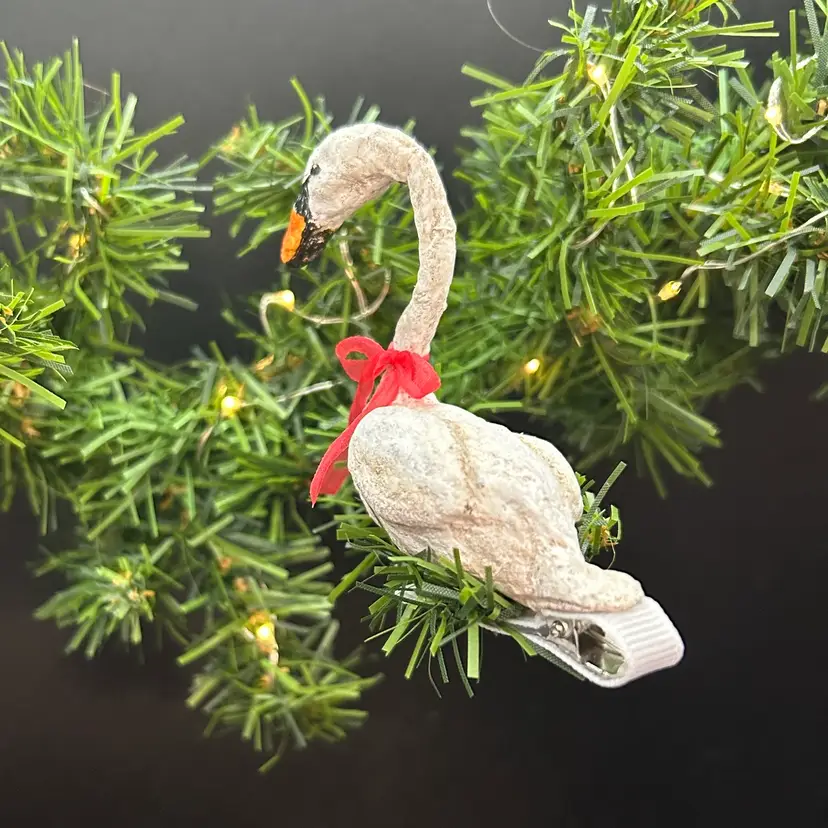 This swan is mounted to a clip! Approx 3.5 x 3 x 1.5