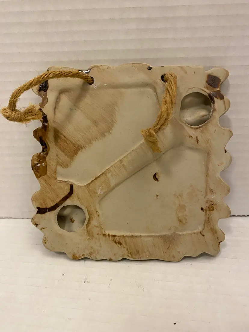 Square Pottery Blue Fish Hanging Plaque. Used. Good condition. See pictures.