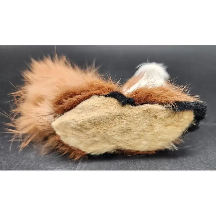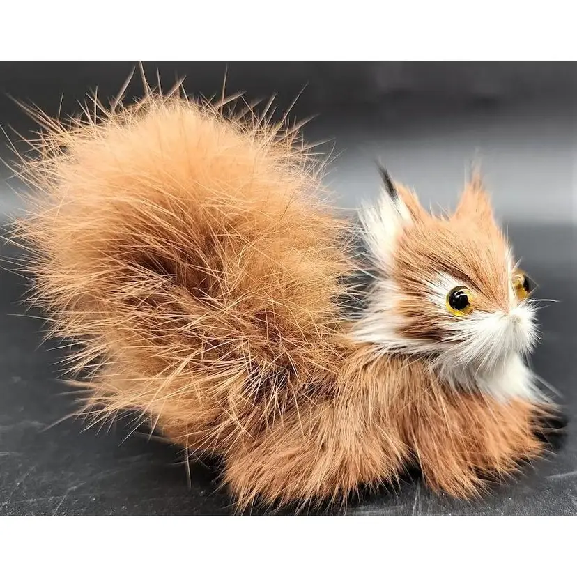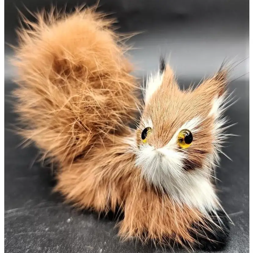 Squirrel figurine circa 1940's with fur and glass eyes. Measures 3 1/2" long x 2 3/4" tall x 1 1/4" wide.