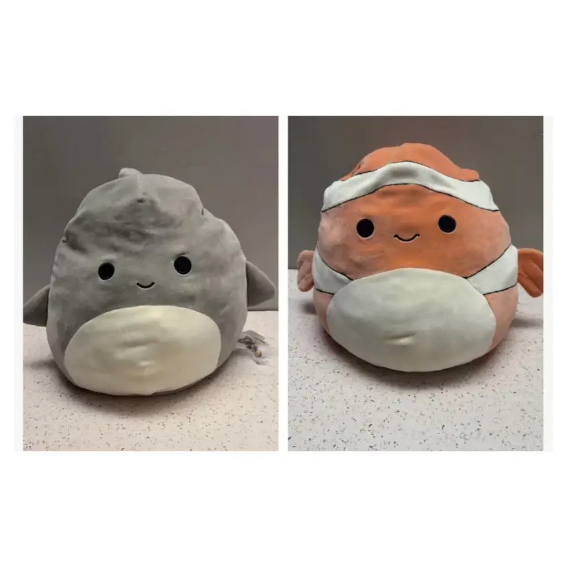 Squishmallow 5" Flip-A-Mallow Gordon The Shark & Ricky The Clown Fish 2020 (great condition)