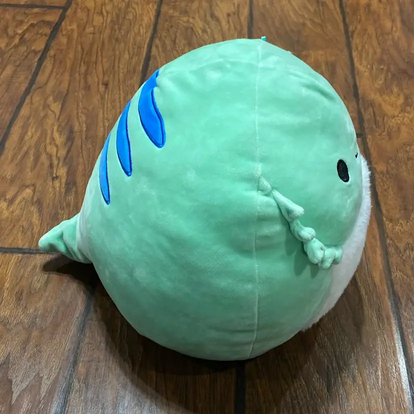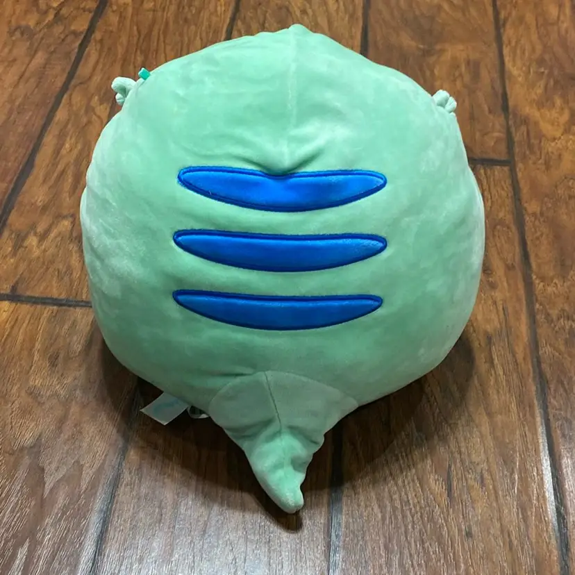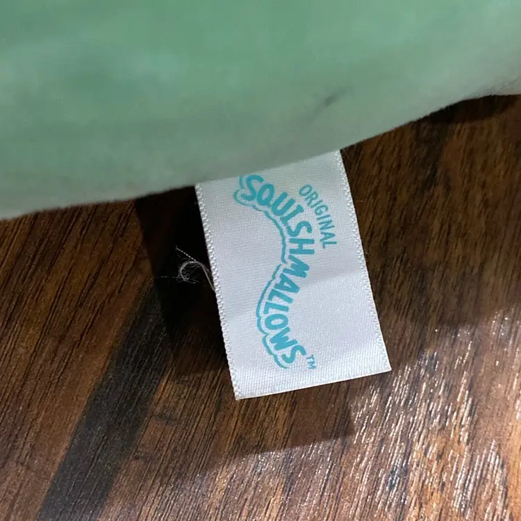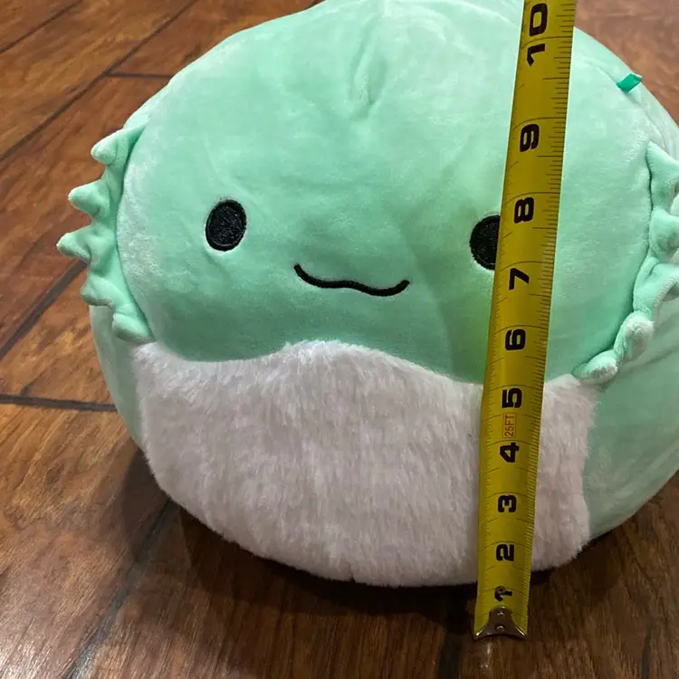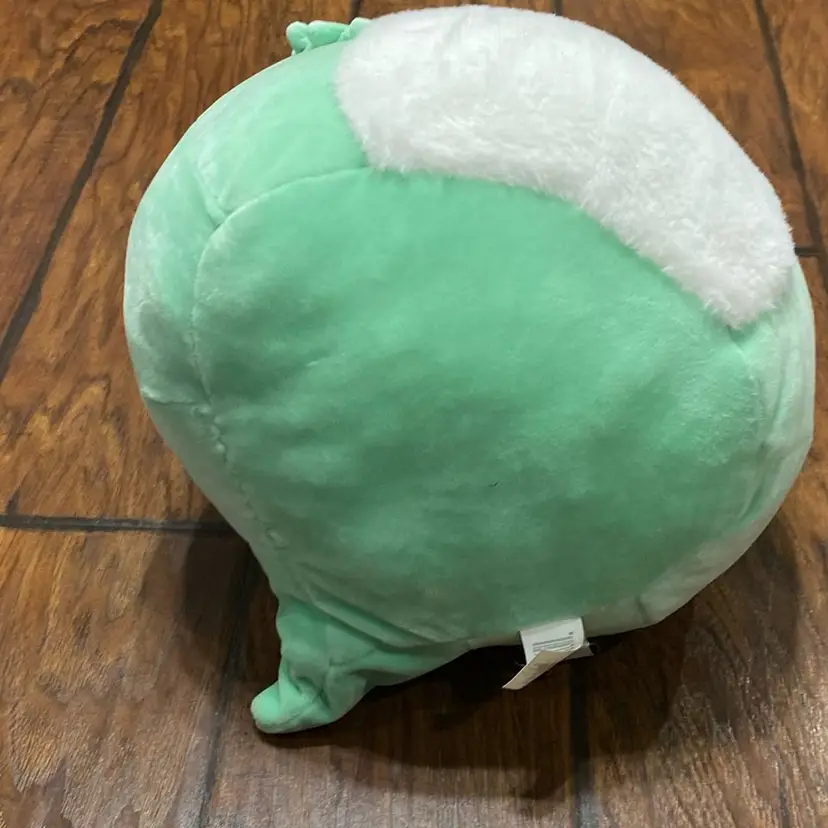 Adorable green plush toy with a smiling face. Soft and cuddly.