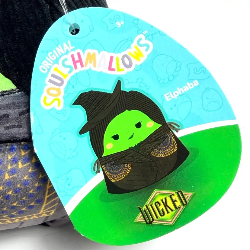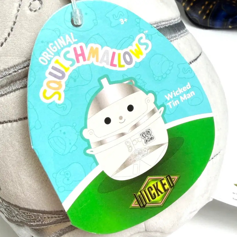 Official Squishmallows Wicked-themed plush set featuring Glinda, Elphaba, and the Tin Man. All three are brand new with tags, never played with, and in excellent display condition.