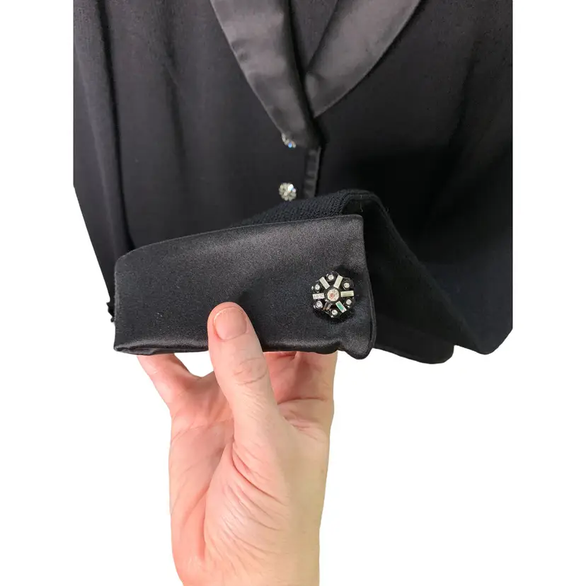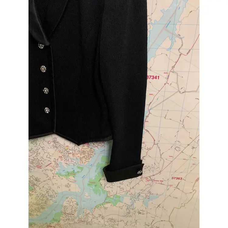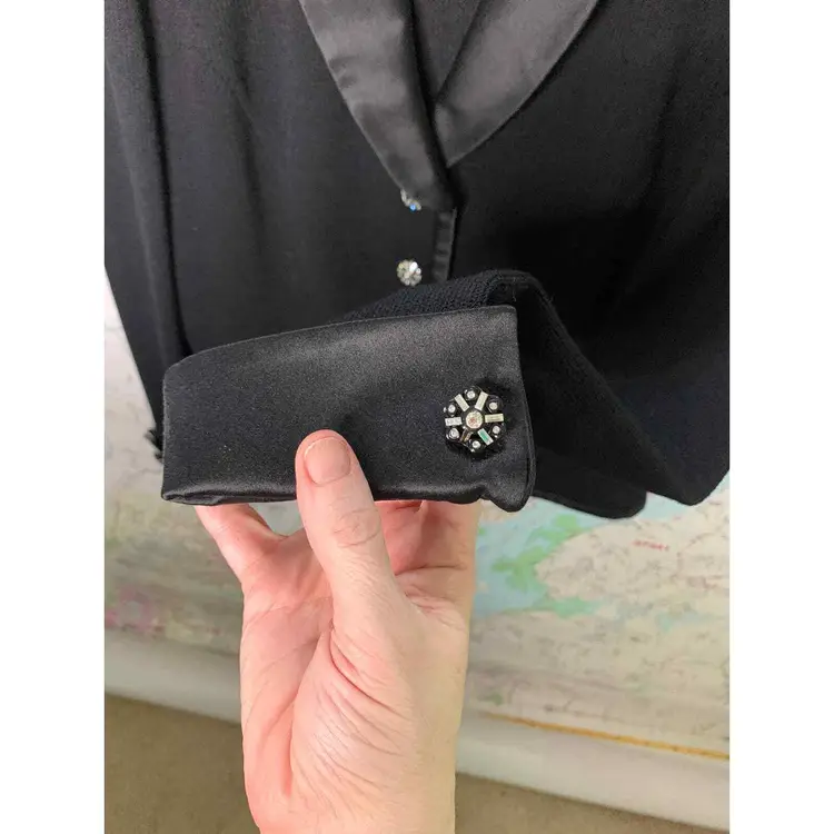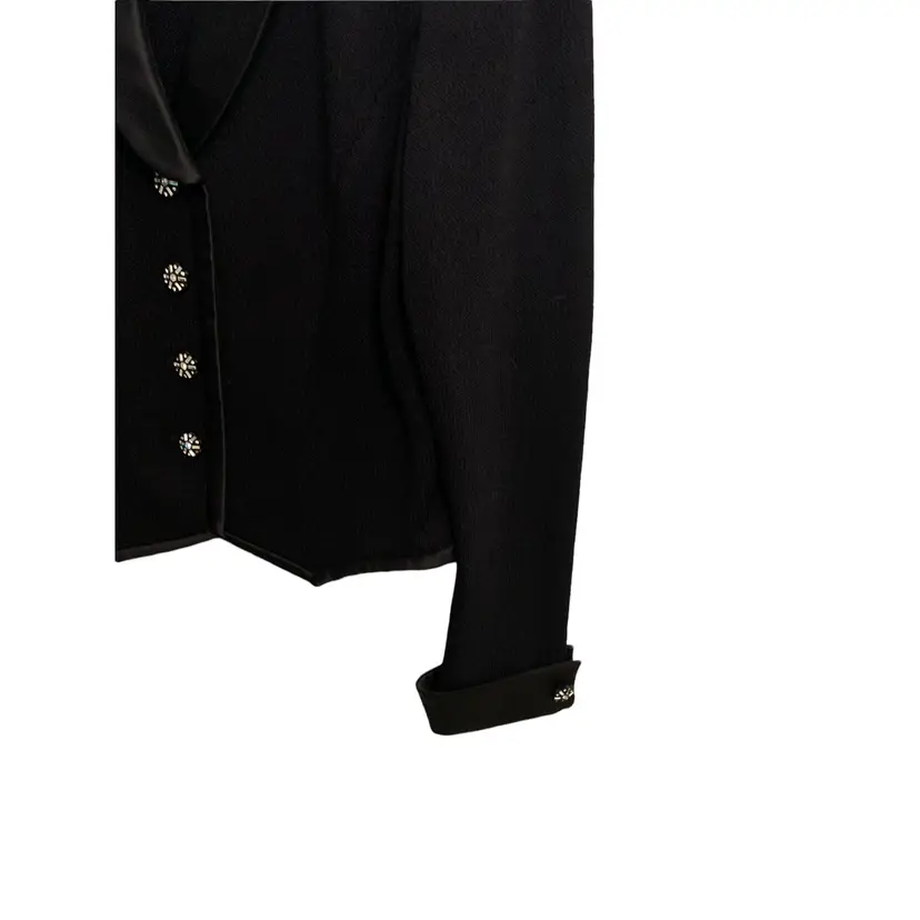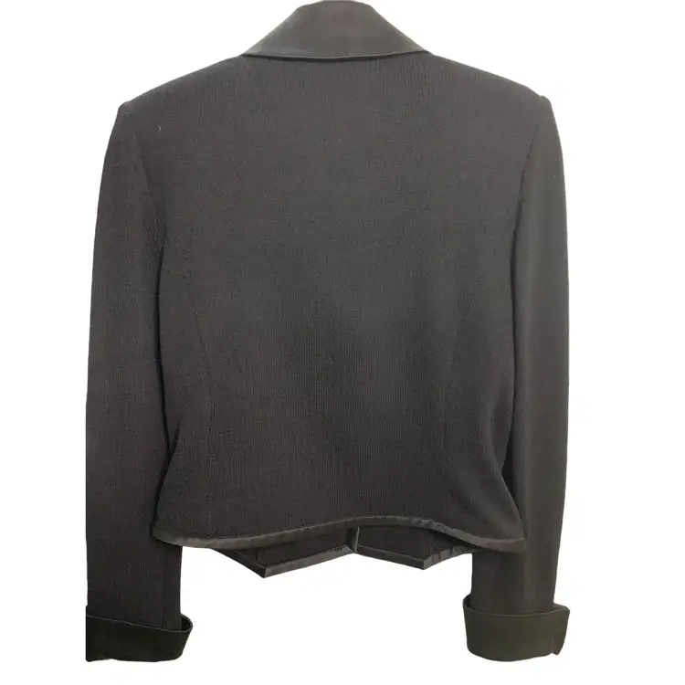 Features: Rhinestones, Removable Insert, Shoulder Pads, Stretch,, Shawl Collar, 4 Button Front Closure, Insulation Material: none MPN: Does Not Apply Department: Women Personalize: No Handmade: No Pattern: Solid Lining Material: unknown Season: Fall, Spring, Winter Occasion: Business, Casual, Party/Cocktail Vintage: No Size: 4 Country/Region of Manufacture: Unknown Model: ST. JOHN Accents: Button, Rhinestone Size Type: Regular Jacket/Coat Length: Short Character: Angel Sleeve Length: Long Sleeve Fabric Type: Knit Brand: St. John Outer Shell Material: Cotton Blend Style: Basic Jacket Color: Black Closure: Button Garment Care: Dry Clean Only Theme: 80s, 90s, Classic Fit: Classic Type: Blazer