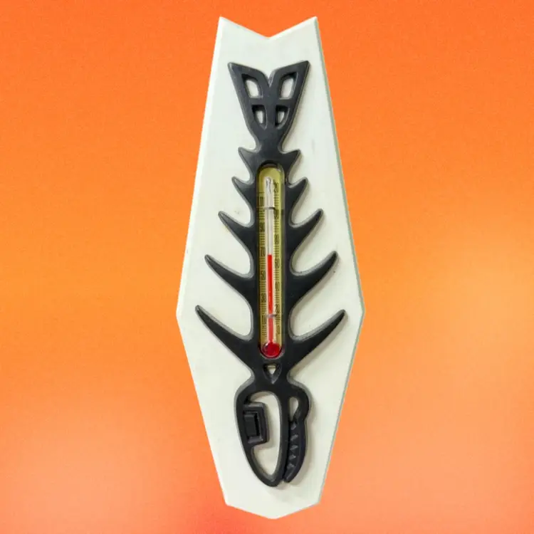 6 7/8” x 2 5/8”. Thermometer seems to work!