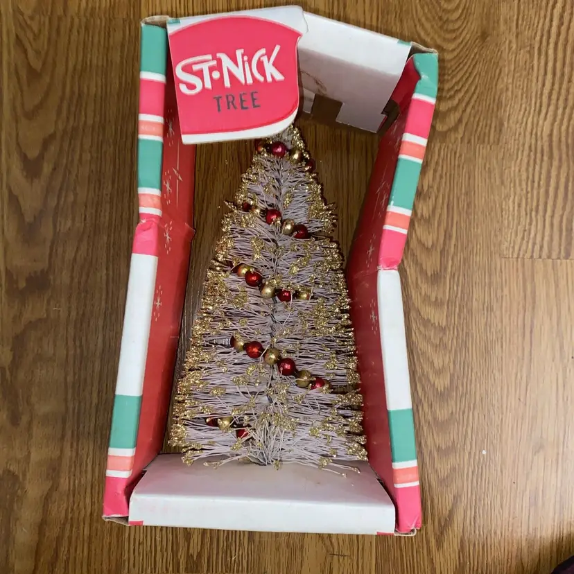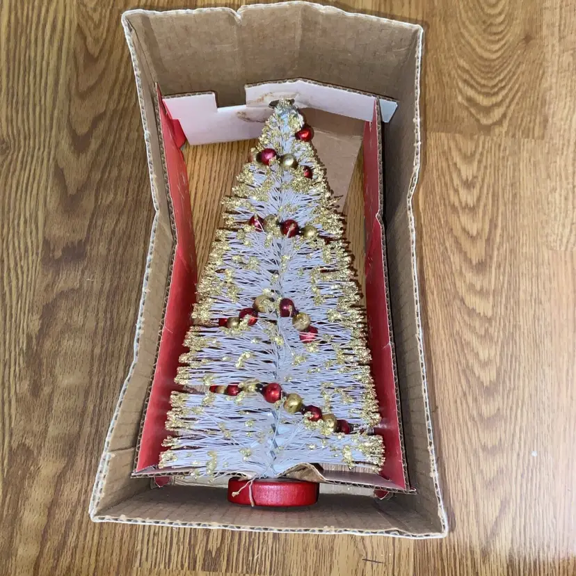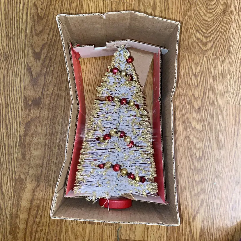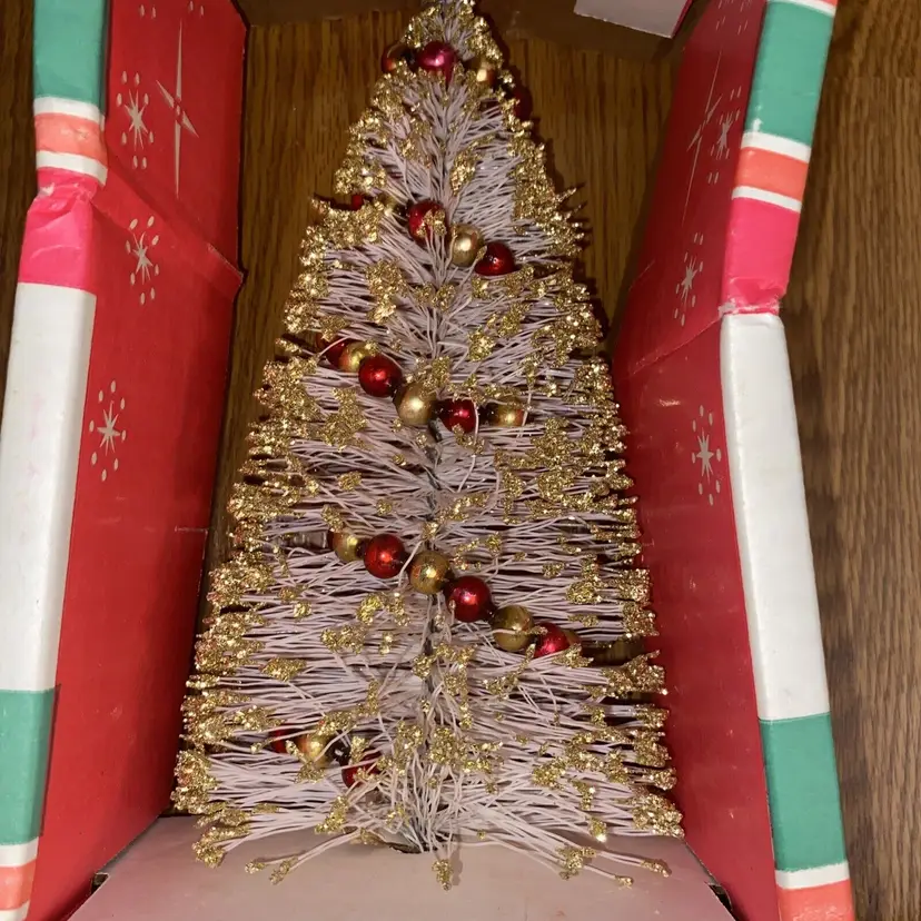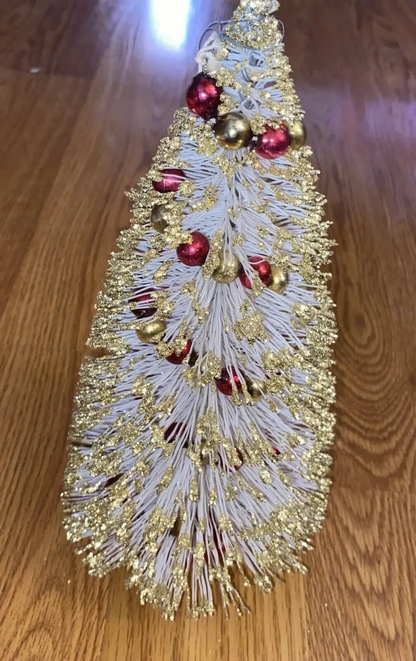 Brand: American Tree & Wreath Type: Tree Occasion: Christmas Form: Tree Artificial/Fresh: Artificial Common Name: Bottle Brush Color: White Item Height: 10.5” Product: Tabletop Mini Tree