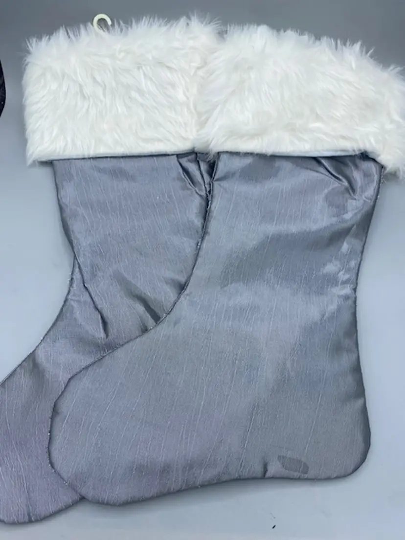 The St. Nicks Choice Gray/Silver Lining Christmas Stockings are medium-sized holiday collectibles perfect for any Christmas occasion. Made by the brand St. Nicks, these original Christmas stockings come in a set with a classic stocking design in a festive gray and silver color scheme. Standing at 18 inches tall, these Christmas stockings are a perfect addition to any holiday decor, bringing a touch of Christmas cheer to any home. Made in the United States, these stockings are a great way to add a traditional touch to your Christmas celebrations.