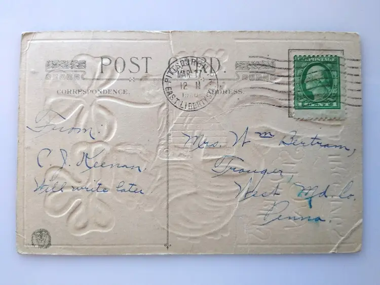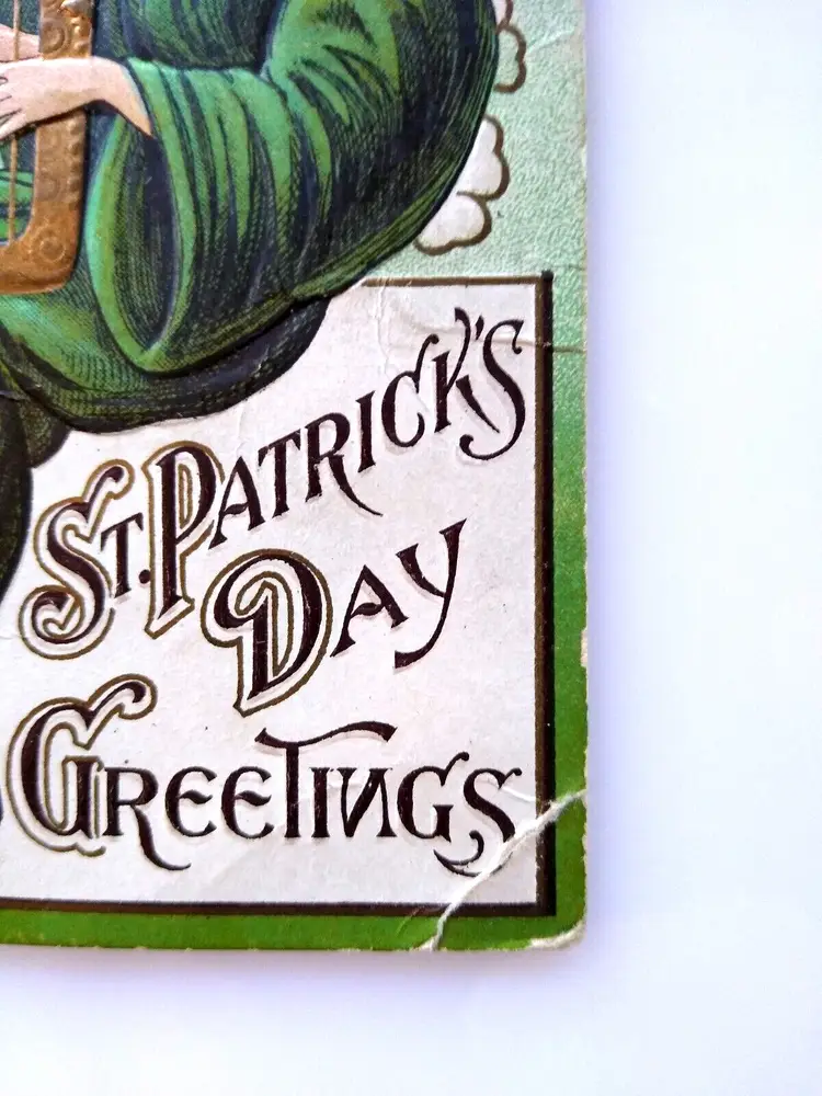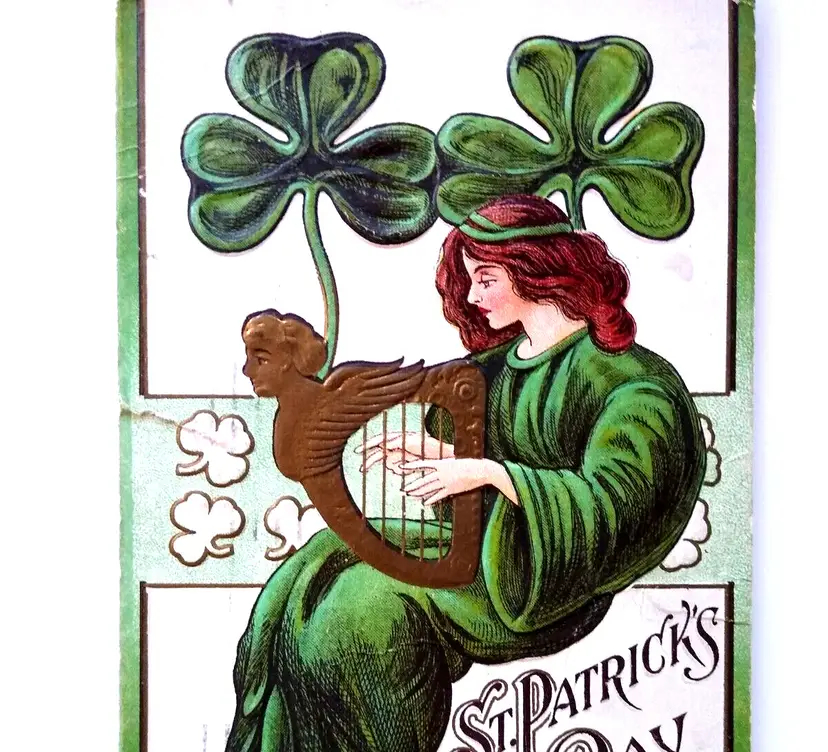 Features: Divided Back, Embossed Custom Bundle: No Time Period Manufactured: 1900-1919 Subject: Harp Number of Items in Set: 1 Occasion: St. Patrick's Day Era: Pre-War (Pre-1914) Size: Standard (5.5 x 3.5 in) Country/Region of Manufacture: Unknown Material: Paper Brand/Publisher: Lions Head Year Manufactured: 1909 Postage Condition: Posted Artist: Unknown Original/Licensed Reprint: Original Unit of Sale: Single Unit Theme: Art, Greetings, Holiday, Irish, Clovers, Shamrocks, Harp, Golden Harp Type: Printed (Lithograph)