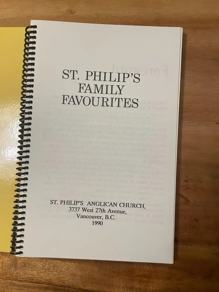 St Philips Anglican Family Favourites Vtg Cookbook Vancouver BC 1990. Minimal to no wear, very high grade condition, see pics.