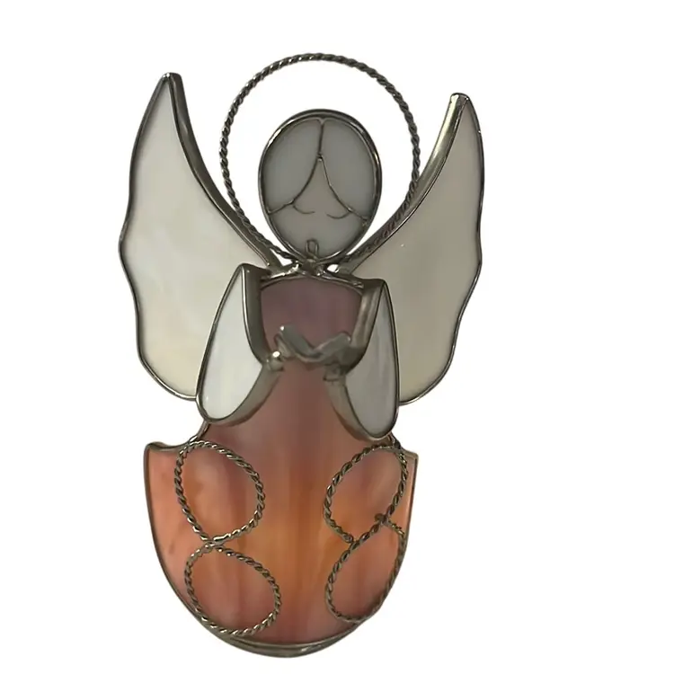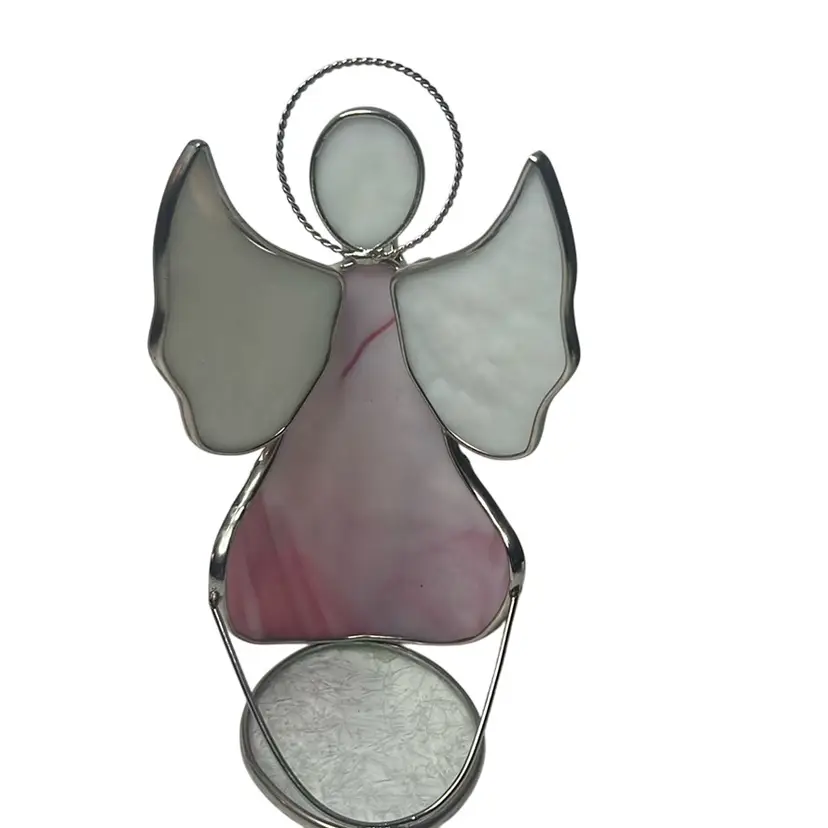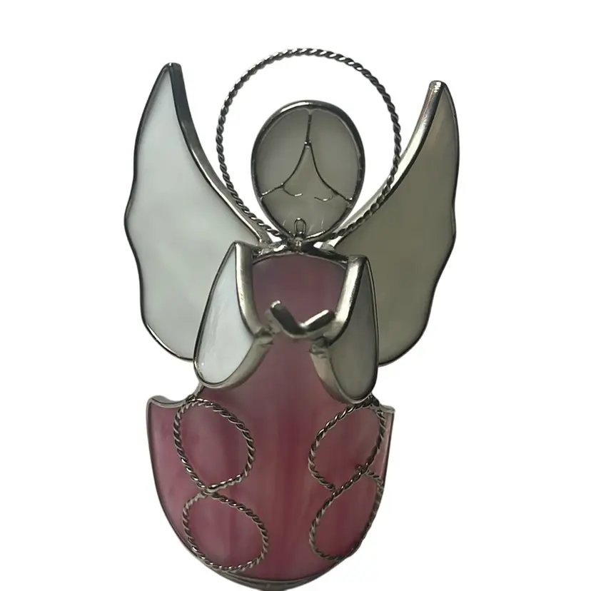 Wonderful pink & white angel. Looks great with battery operated candle behind it. No damage and measures 7” tall & 4” wide