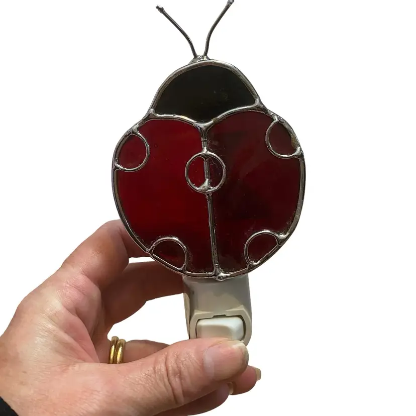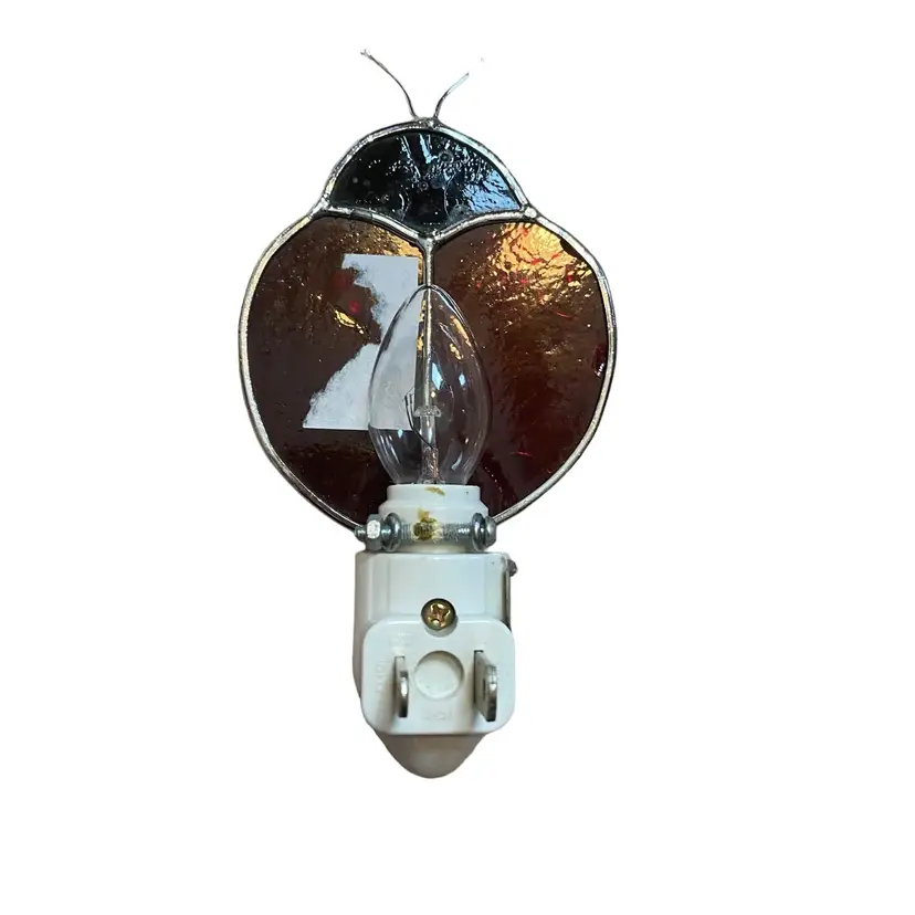 Stained glass ladybug night light 5.5in tall to antennas red black glass