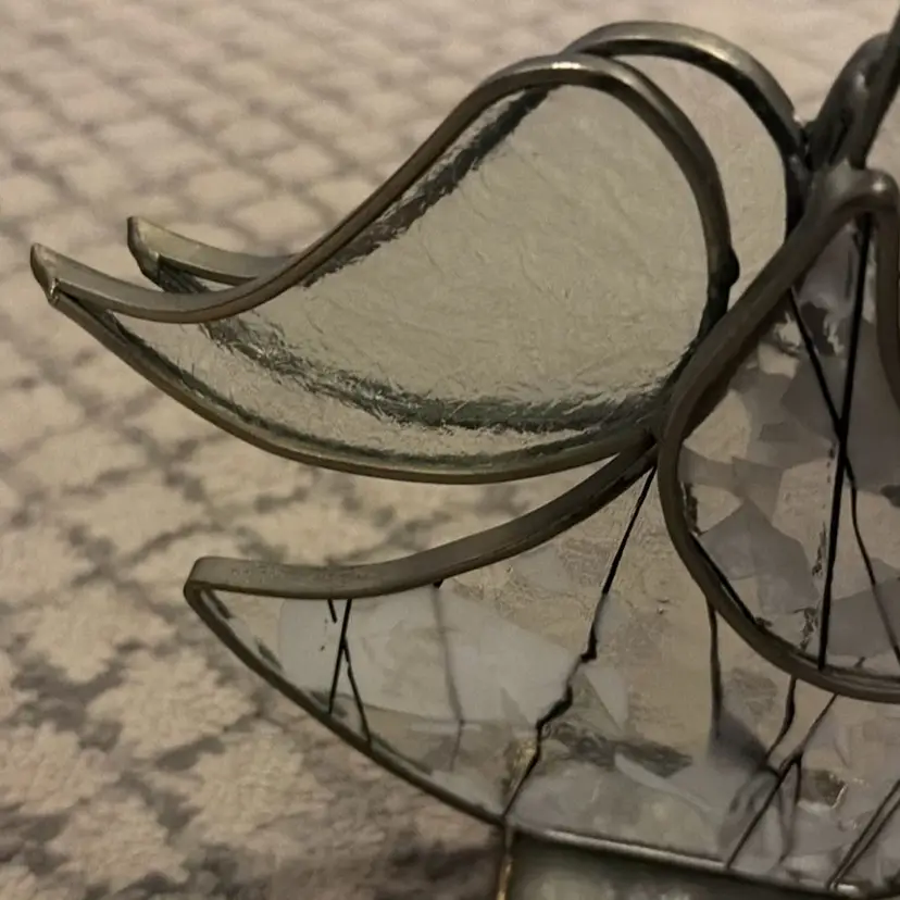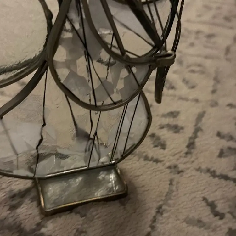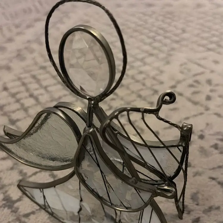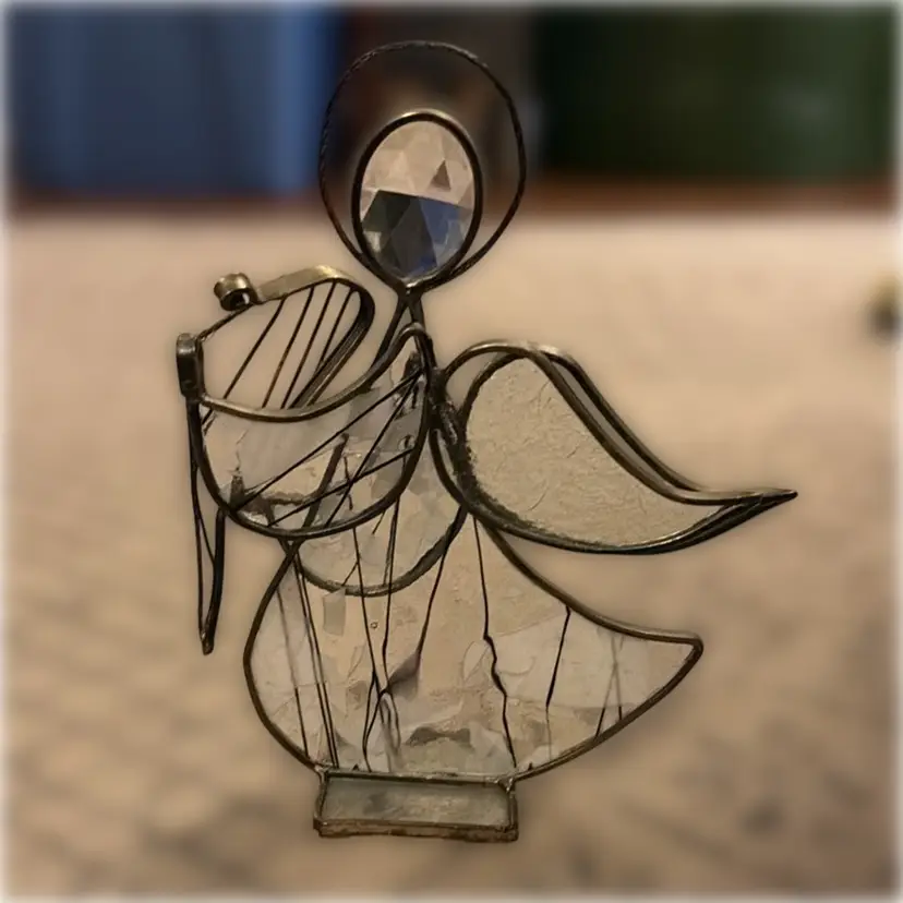 Stained Glass Vintage Angel Playing Harp Crystal Head Figure - 8”