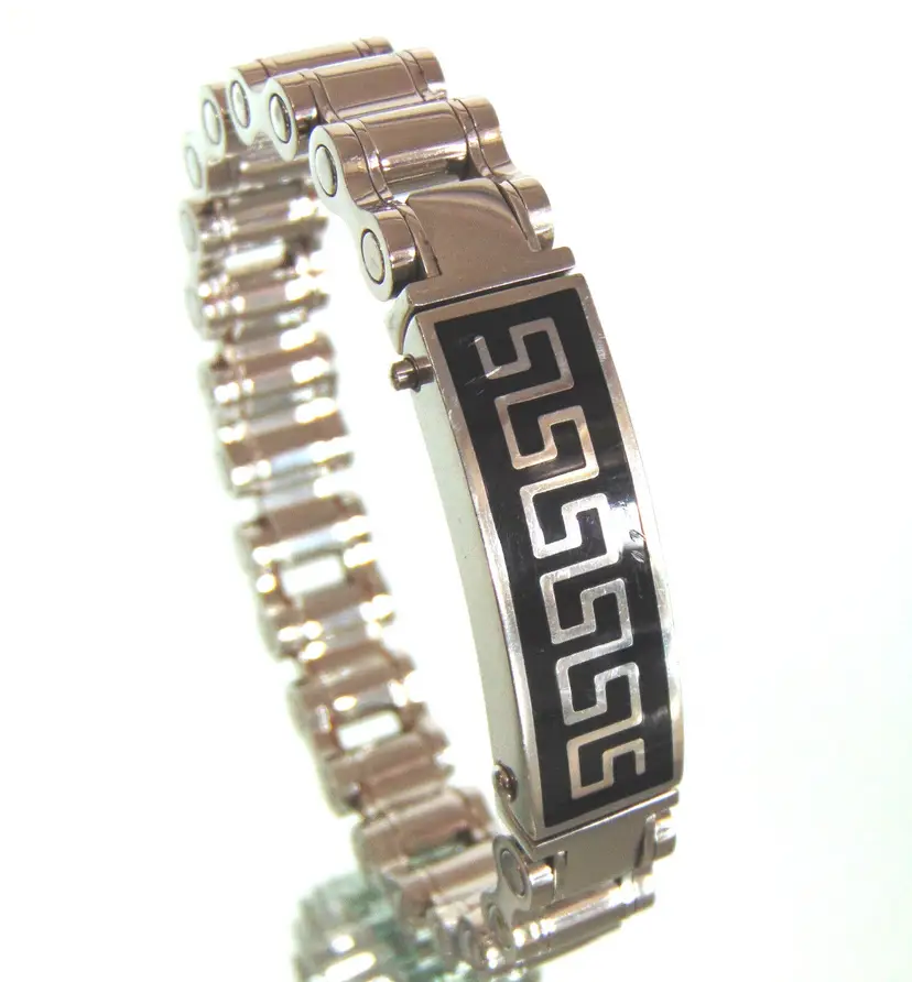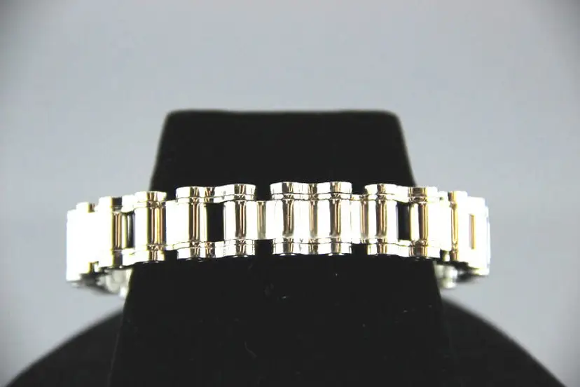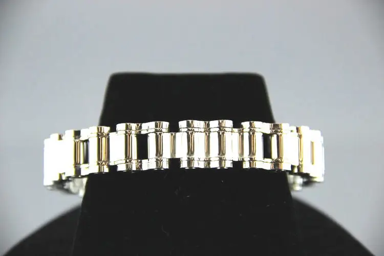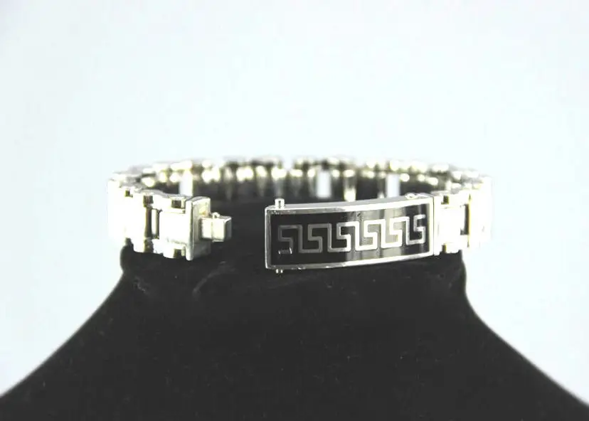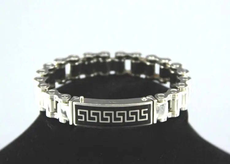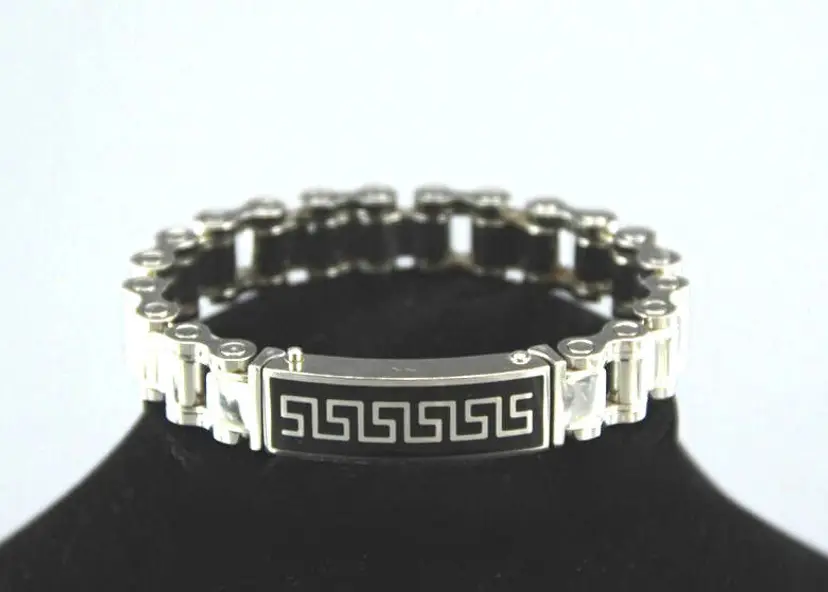 lot: No Length: 8 - 8.49" Length (inches): 8" Type: Bracelet Secondary Stone: Onyx Main Stone Color: Black Color: Black Brand: Vintage Style: Bicycle Chain Stainless Steel and Black Onyx Material: Gemstone Metal Purity: Stainless steel Main Stone: Onyx Metal: Stainless Steel