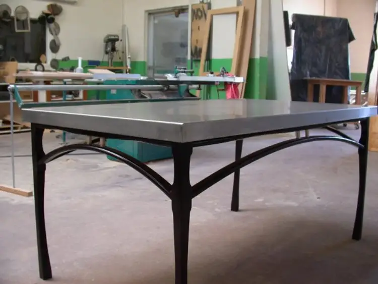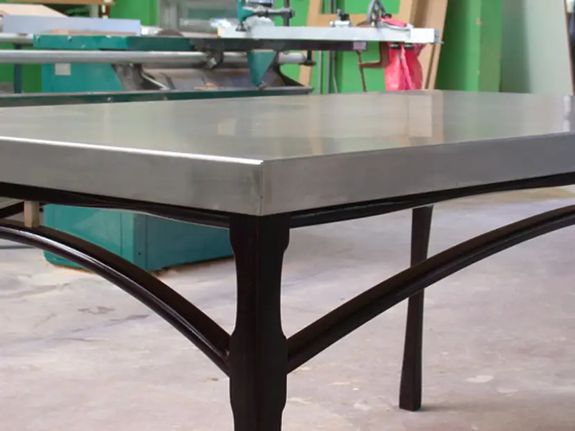 Stainless Steel table n a base of bent laminated Alder. The base is dyed black to allow the grain to show. Most of my work is custom, made to order. If you would like a similar piece, contact me to discuss style, material, budget, ideas and shipping options. Price below is an estimate for similar furniture.