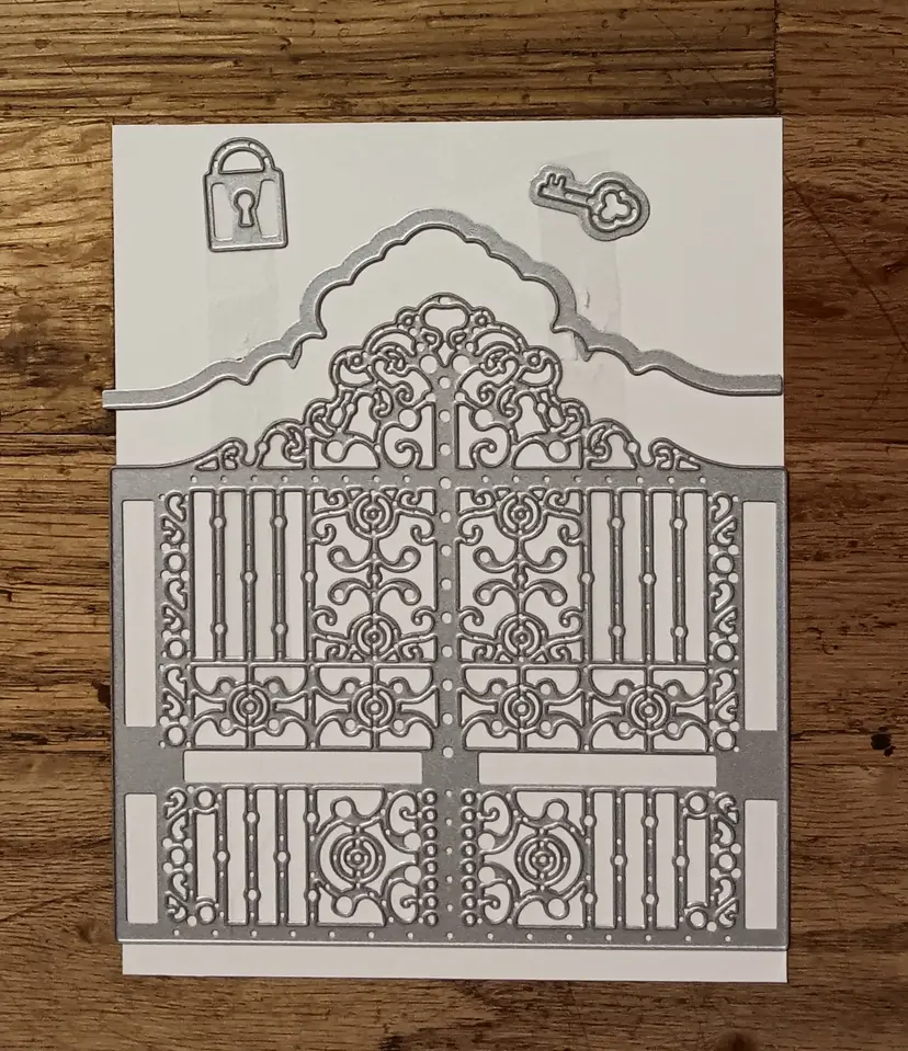 Stampin' Up! Detailed Gate thinlits metal dies of an ornate gothic gate and lock and key. Perfect for all papercrafts, especially cards.