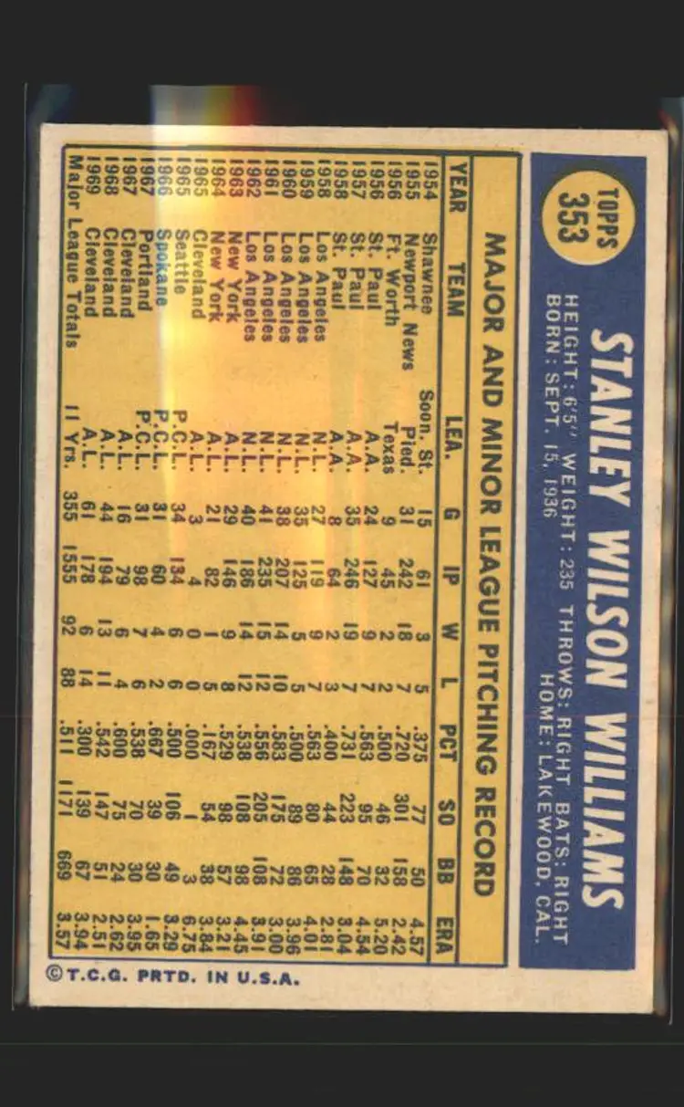 Stan Williams 1970 Topps #353 - () - Minnesota Twins
