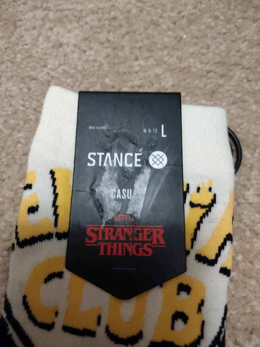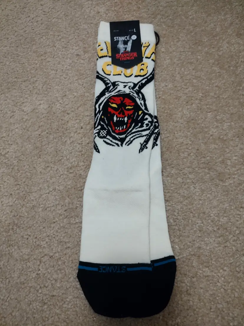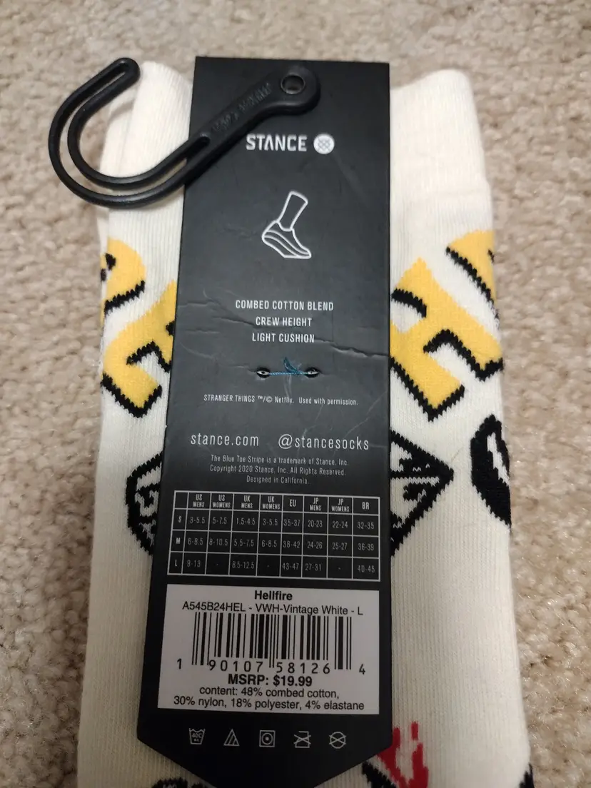 Stance Adult Vintage White Crew Cotton Stranger Things Hellfire Socks Sz L 9-13