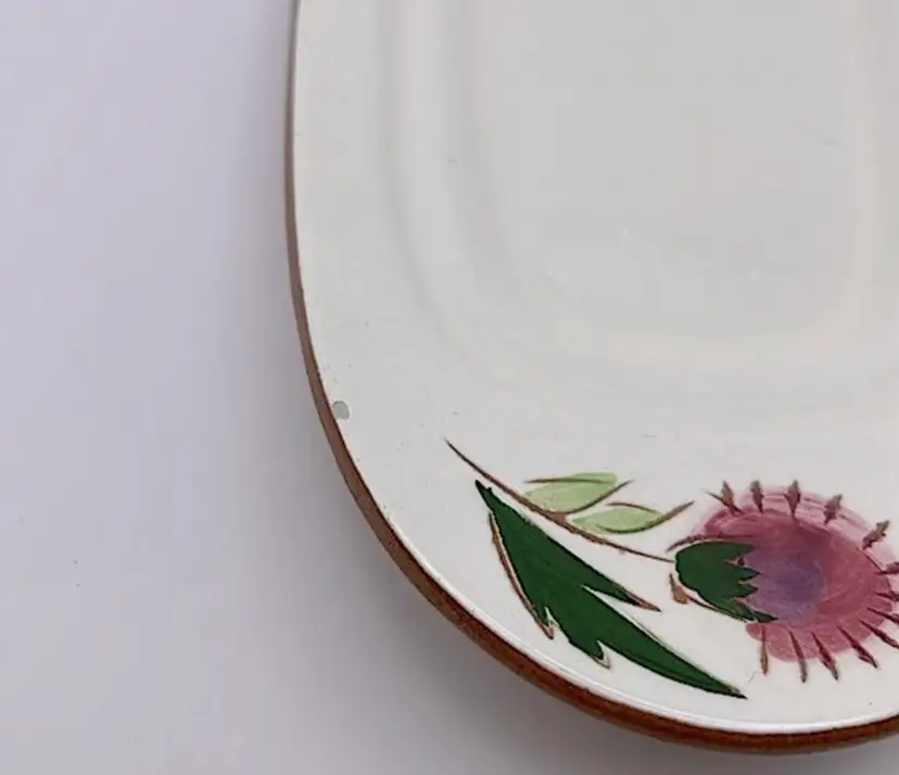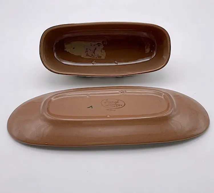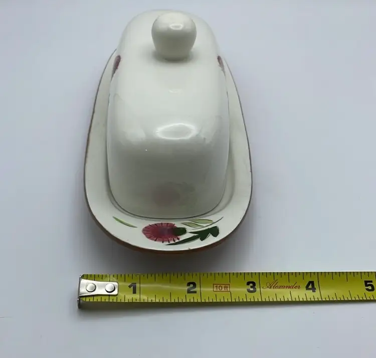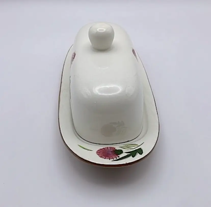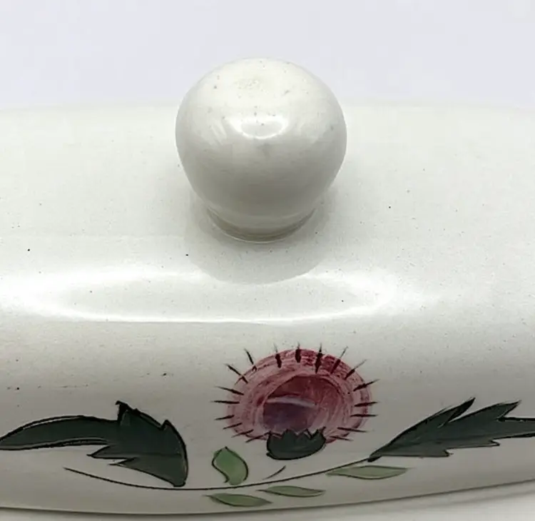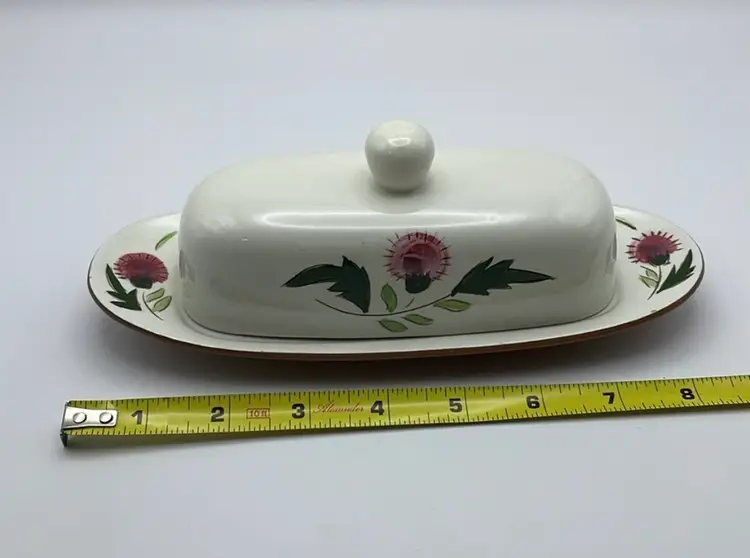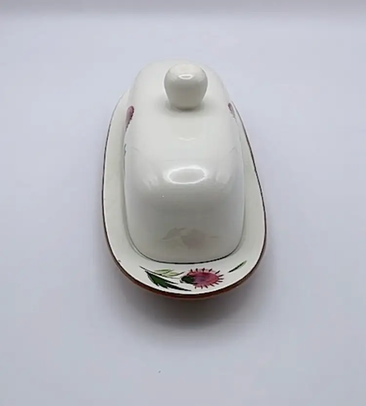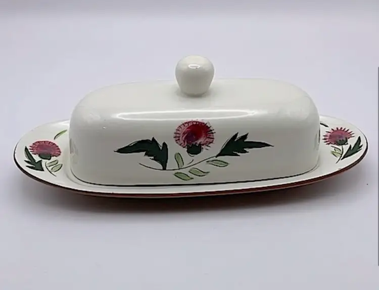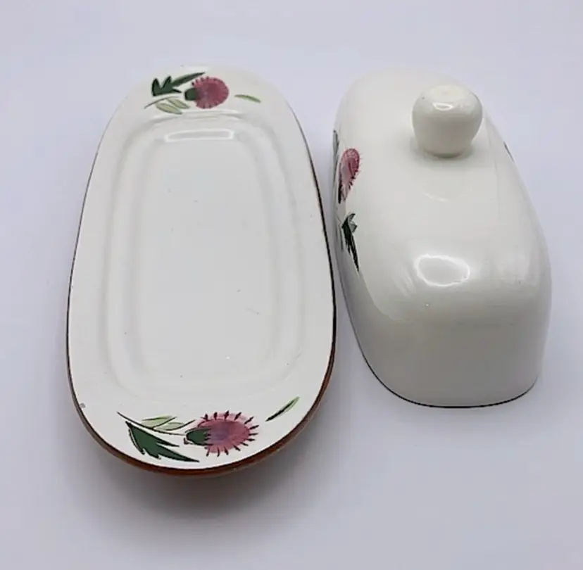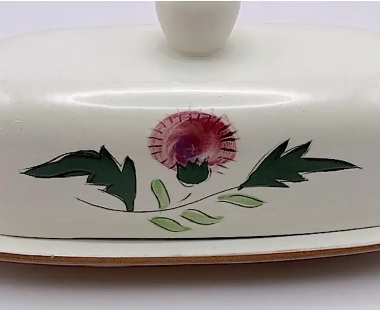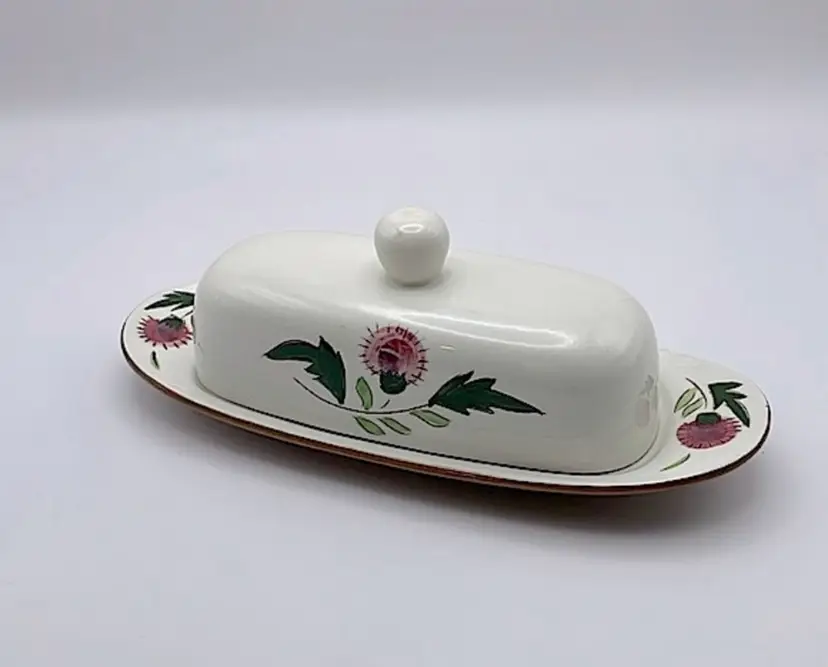 Stangl Pottery, “Thistle“ pattern, 2 pc. butter dish. Nice for use or as a display piece! (3 tiny flea bites, as shown)