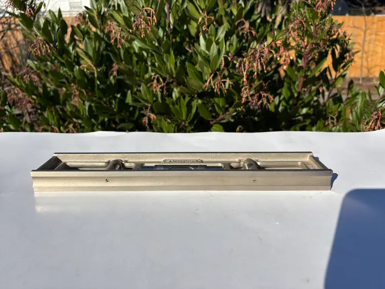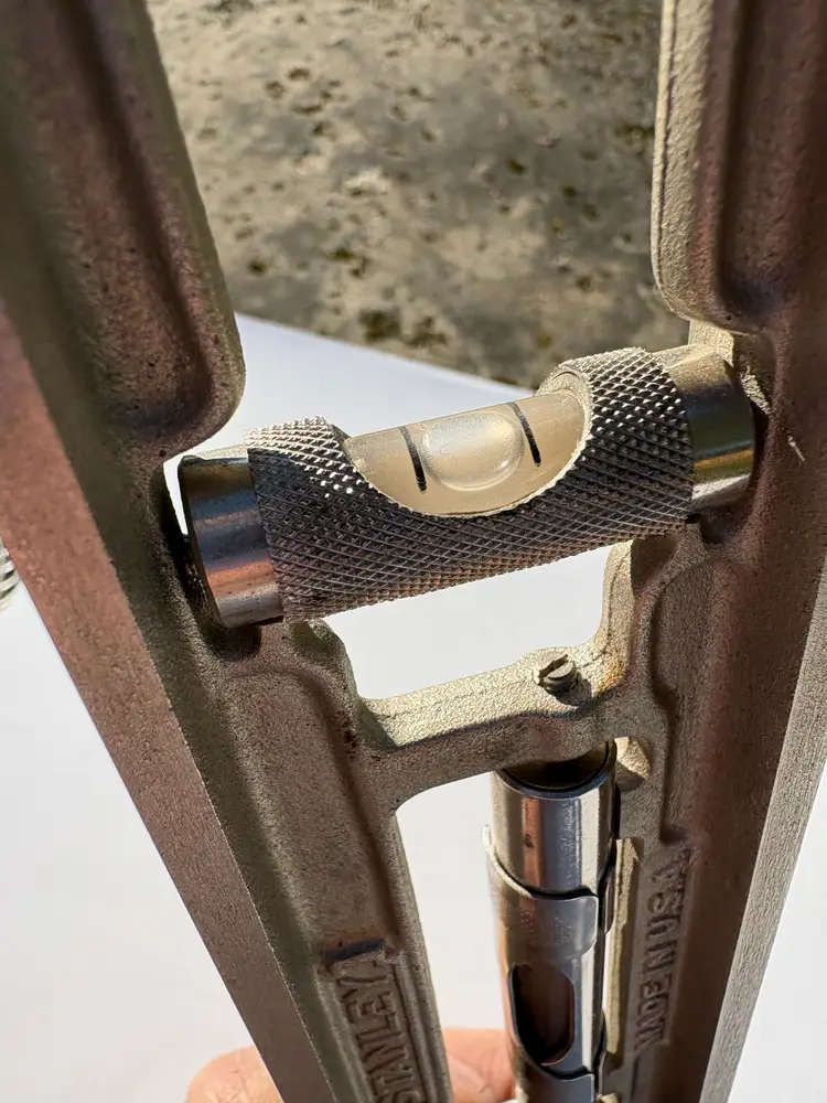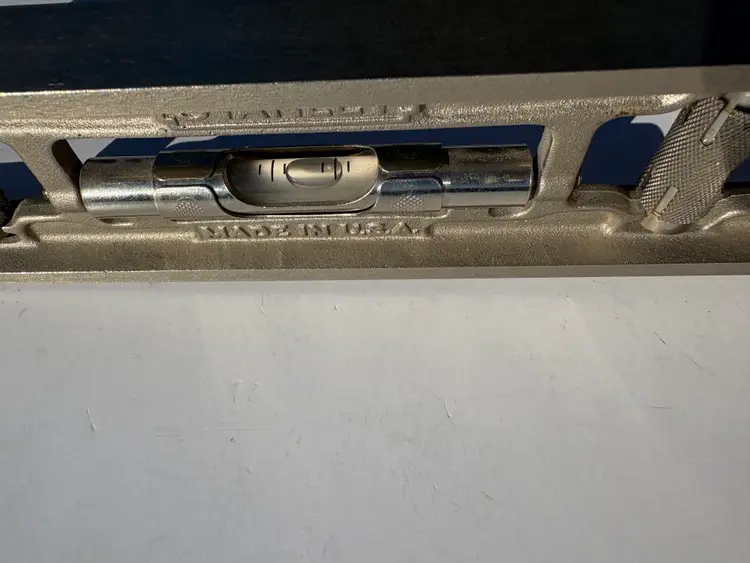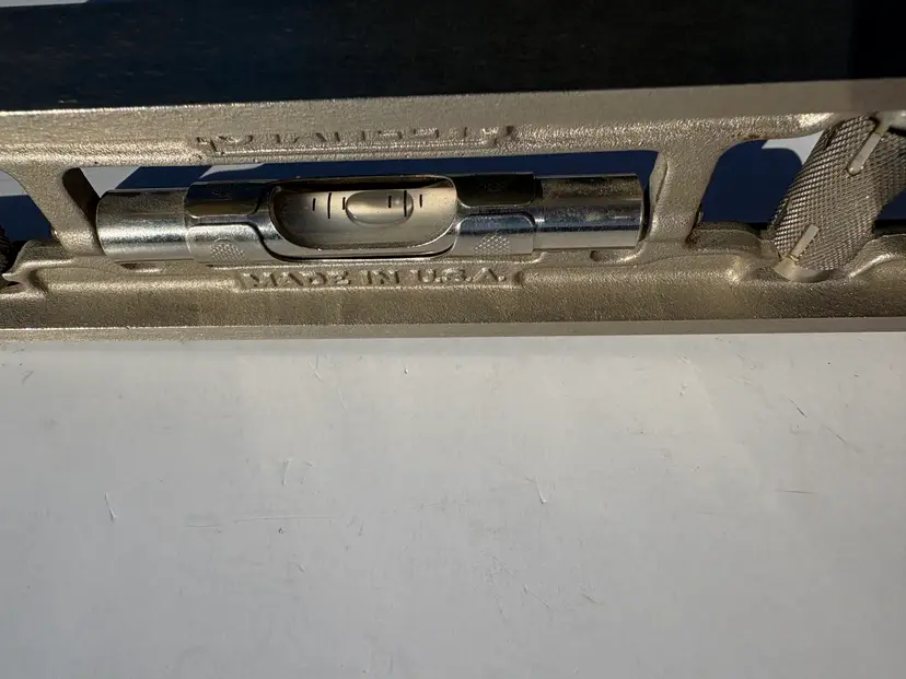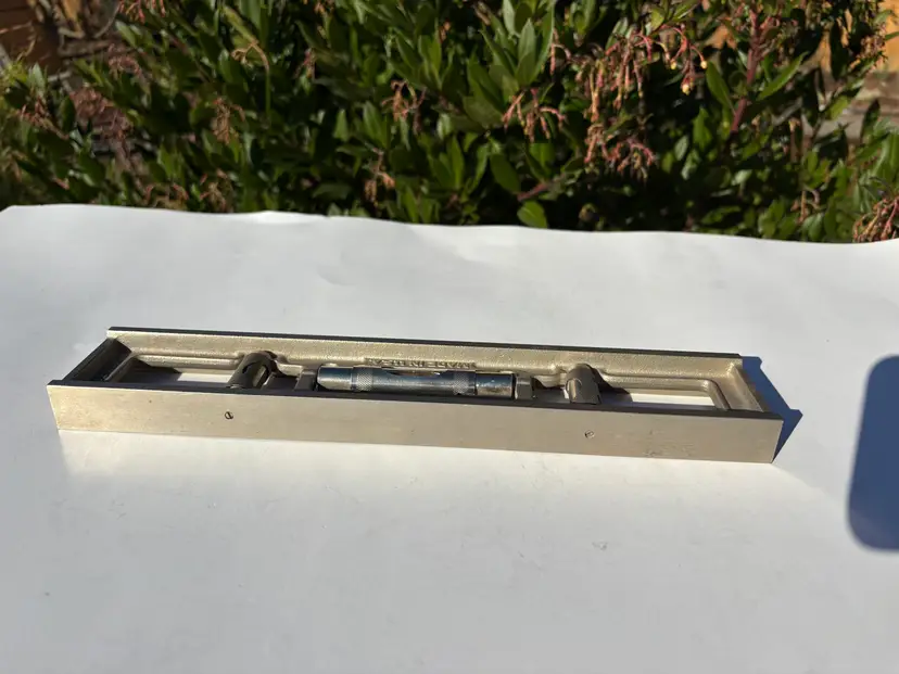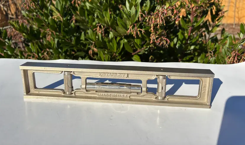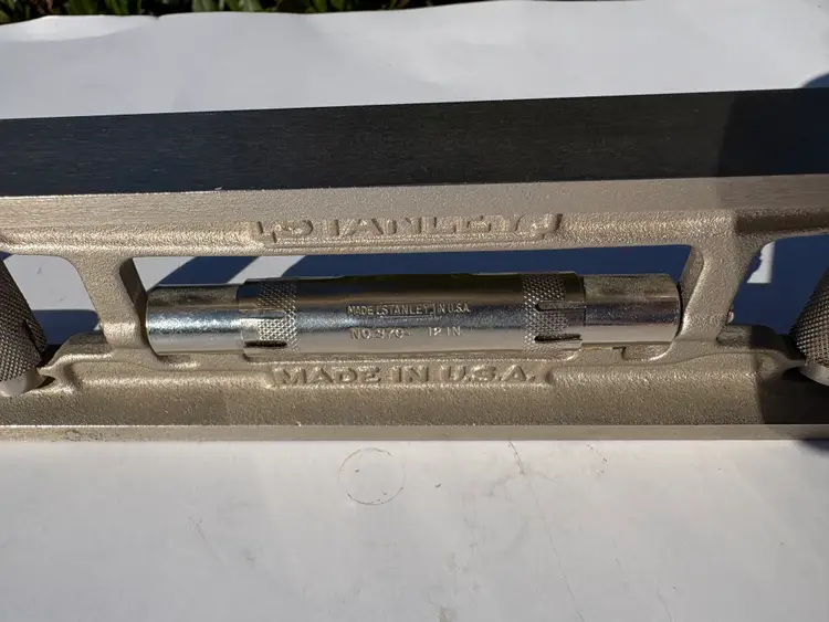 Nickel plated Stanley 12" 37G machinist level. All three vials are good and each is adjustable. The current calibration looks fine. The 37G was always made with ground glass vials as far as I have been able to determine. Grooved bottom for use on cylindrical surfaces. Overall condition is excellent. Has the Stanley "BB" logo which for a 37G puts it somewhere between 1935-1962.