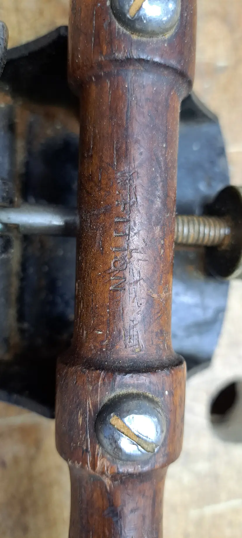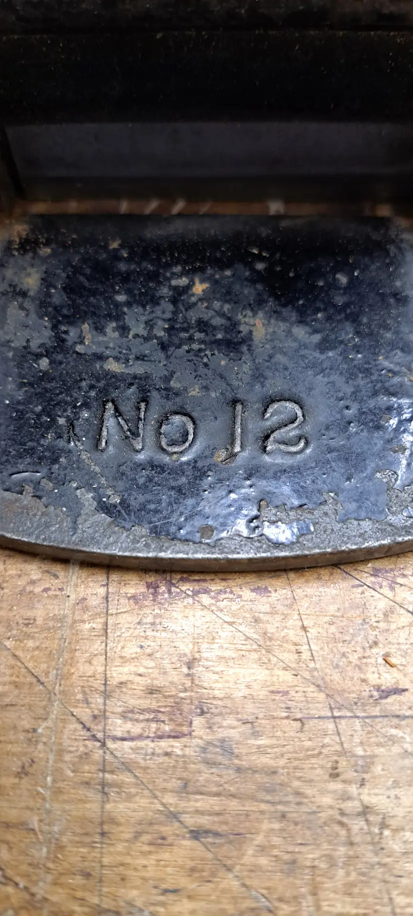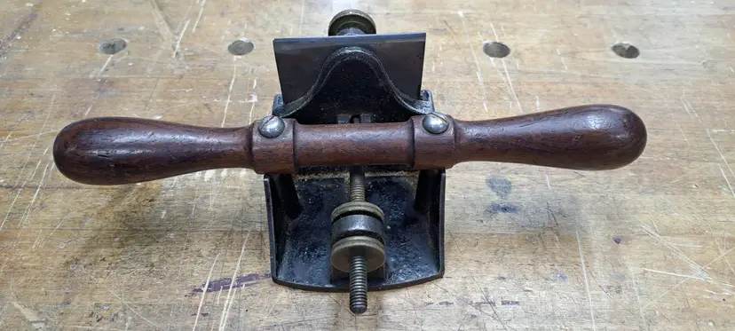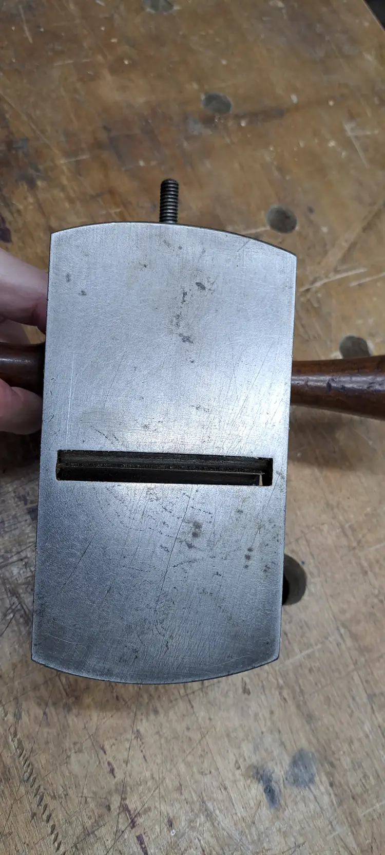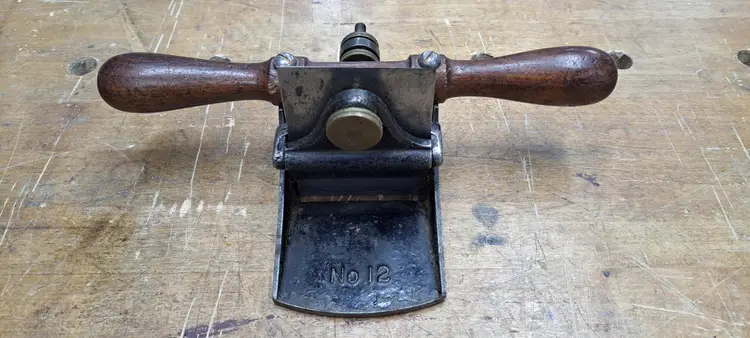 Stanley #12 Scraper Plane. they where made up to about 1947, but other then that I am not sure what year/type this is. The early ones where more square on the base and may had patten dates on the knobs. The only markings I see is No 12 and a previous owners name in the handle, rosewood? no idea. The iron is a more modern replacement that was sharpened at an angle on one end (see photo) I bought this for myself to use, I have had it maybe 2 years or more and have never touched it, it's just sitting in my cabinet. Time for it to go to a new home.